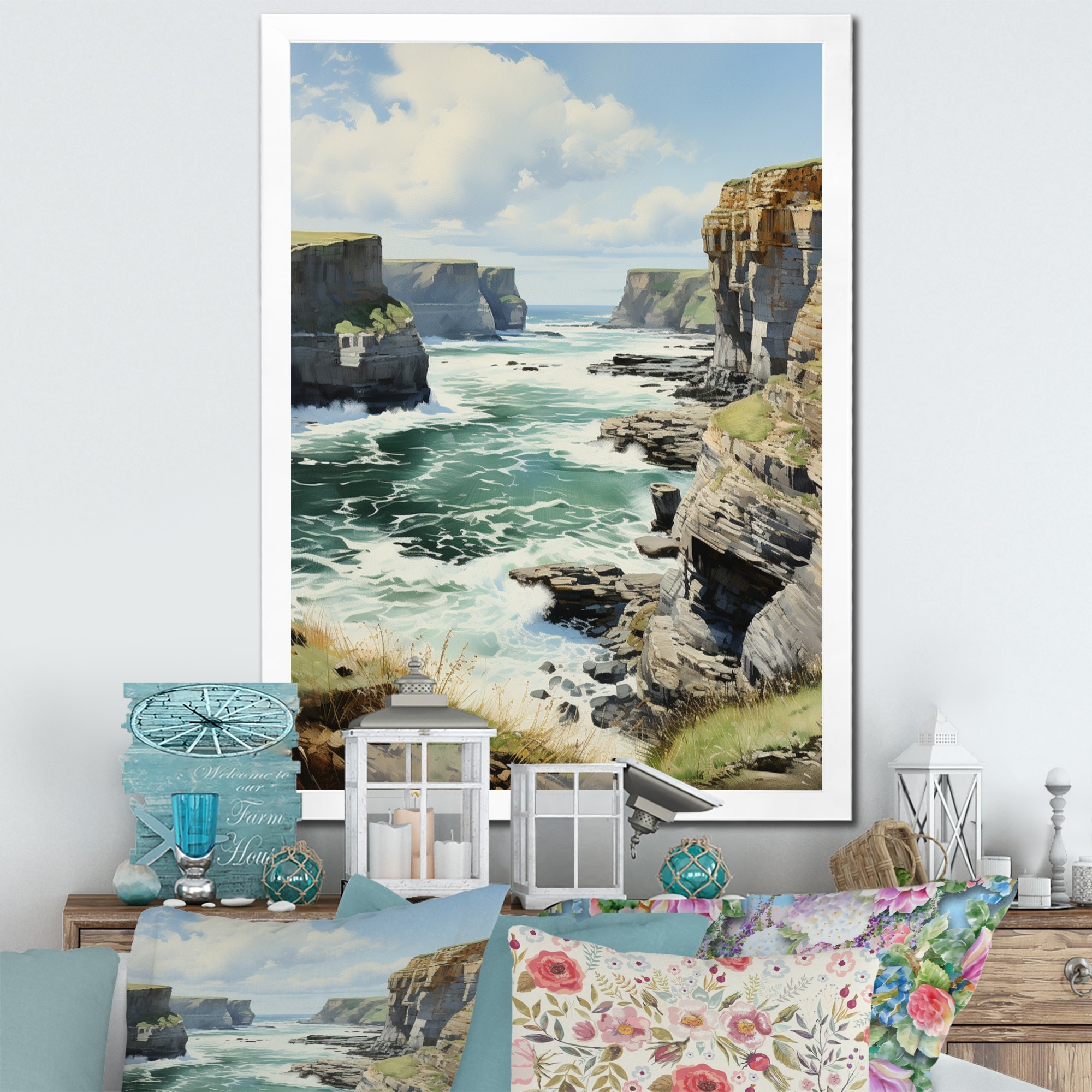 Designart "England Majestic Cliffsengland Landscape II" England Framed Wall Decor