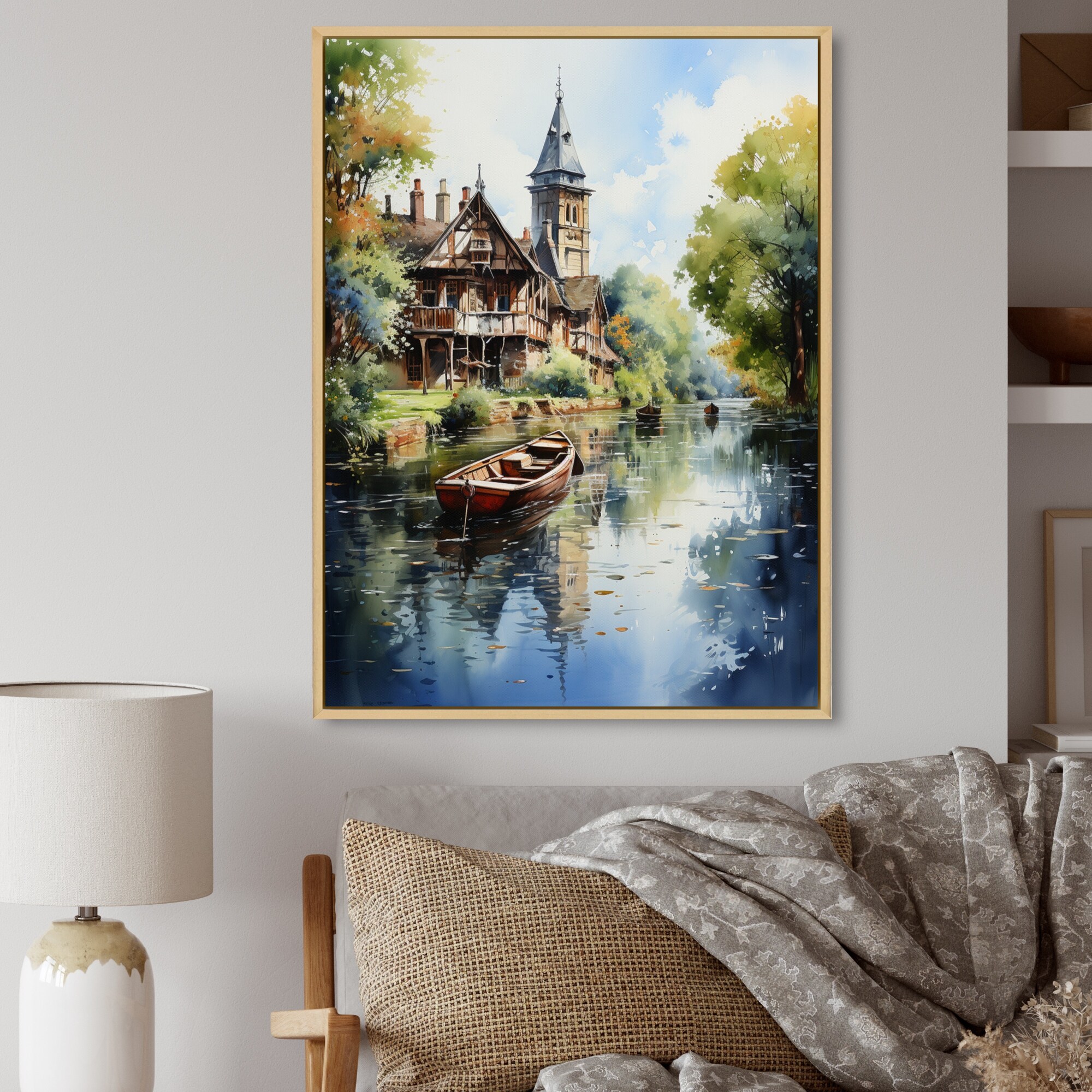 Designart "England Peaceful Canalengland Landscape I" England Framed Canvas Prints