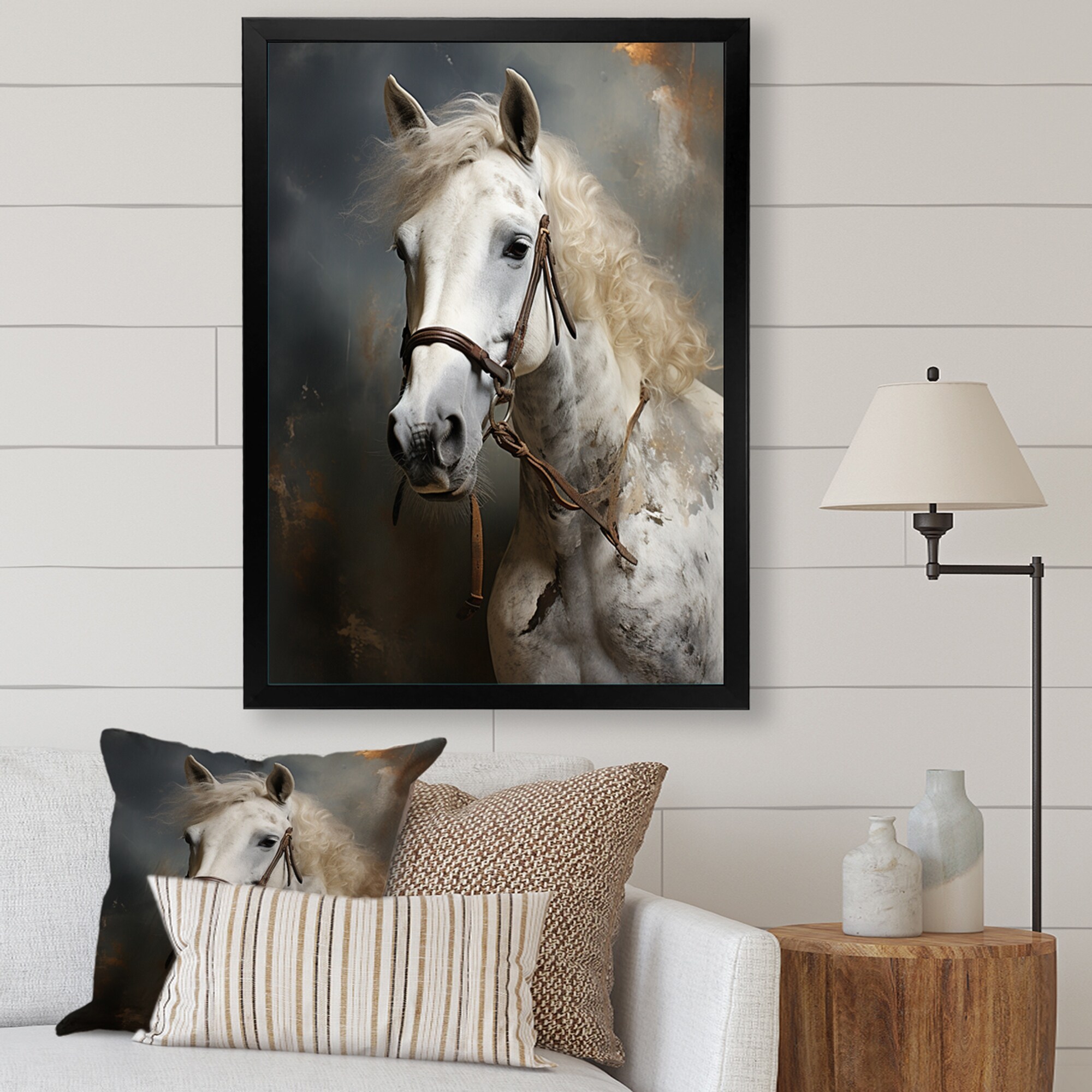 Designart "White Horse Equestrian Duality III" Animals Horse Framed Canvas Prints