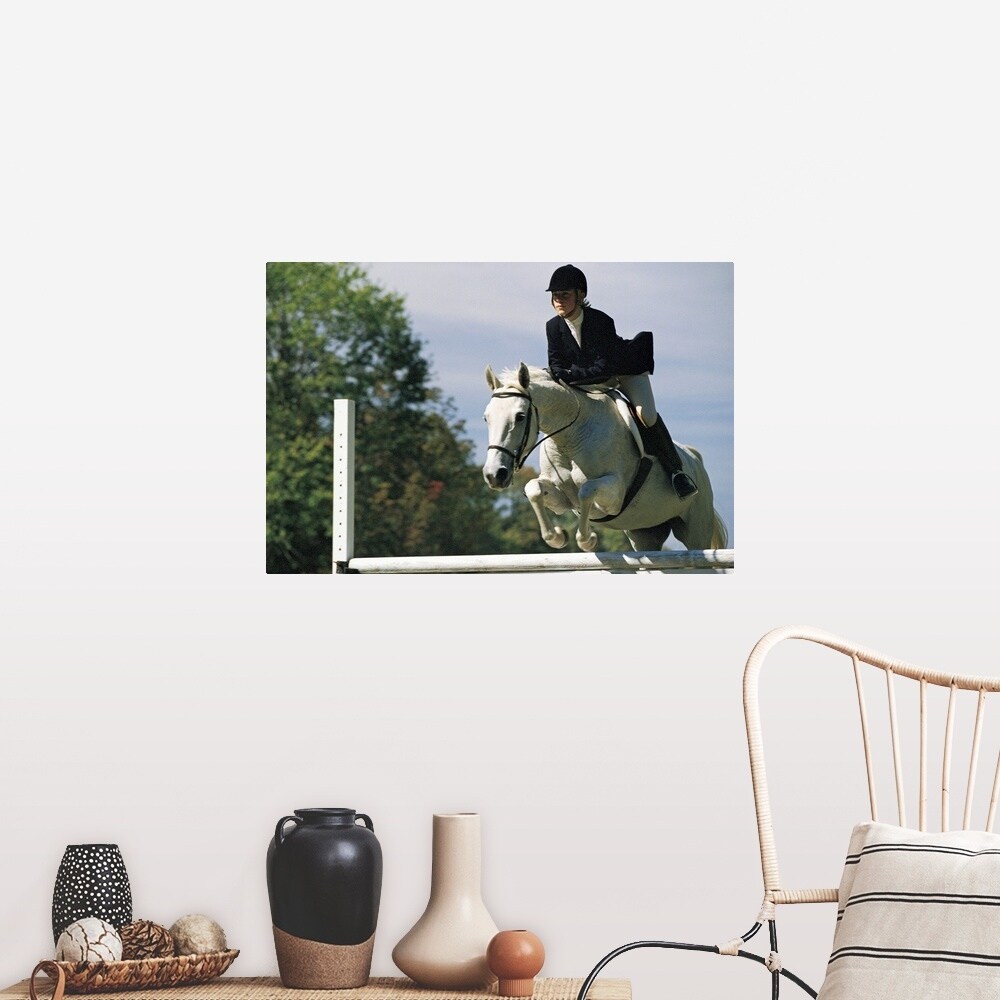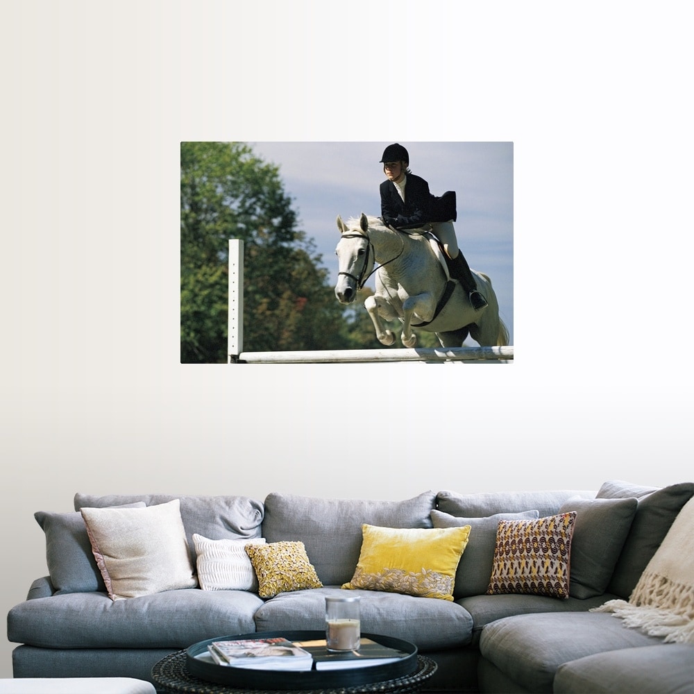 "Female equestrian walking horse in training arena" Poster Print - Multi