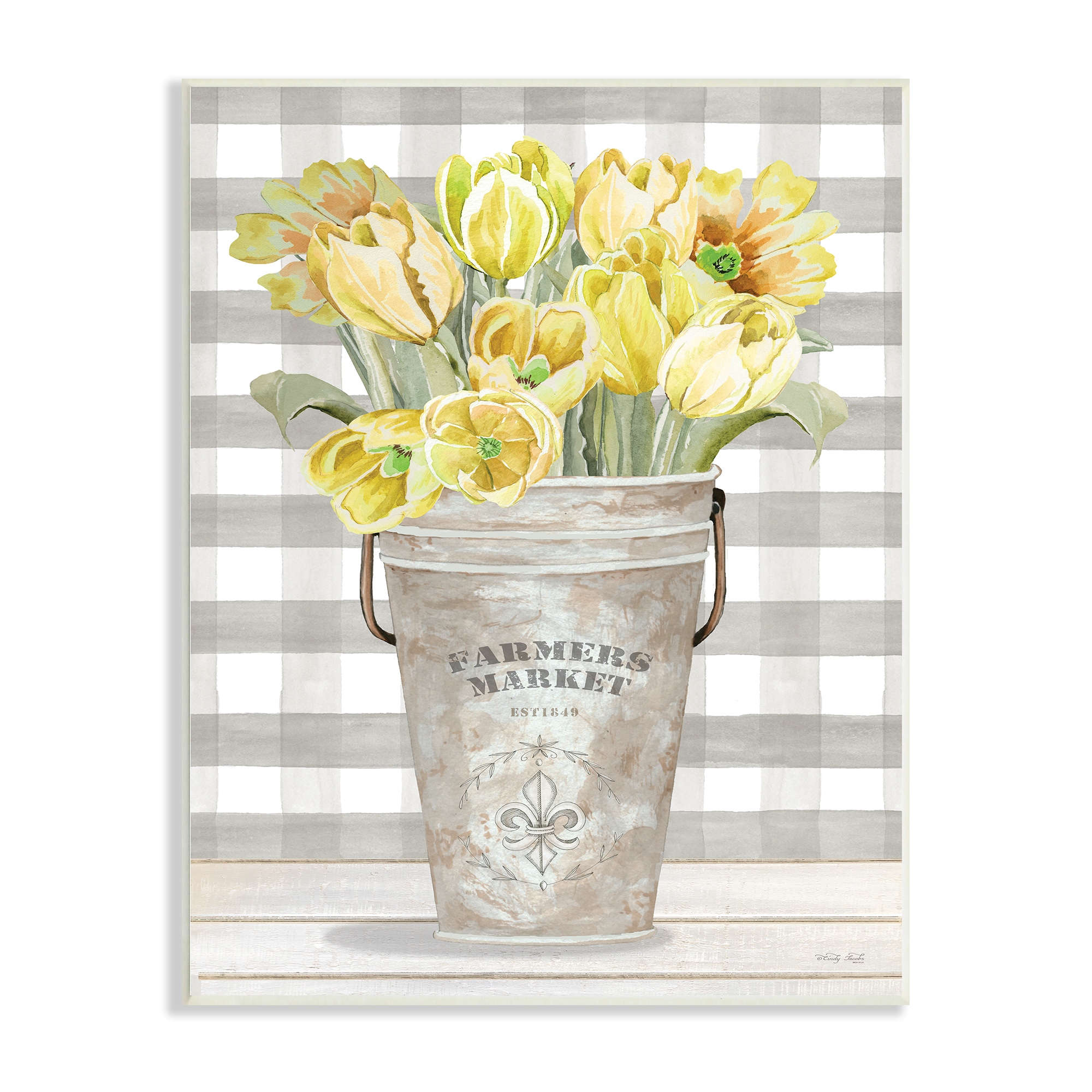 Stupell Yellow Country Tulips Bouquet Tartan Farmers Market Planter Wood Wall Art