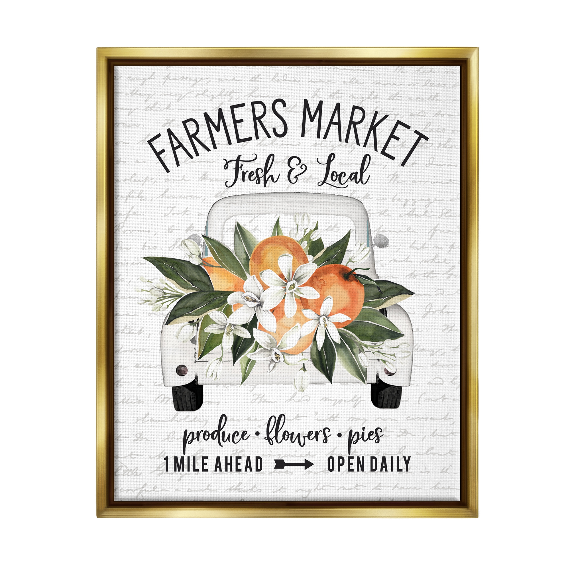 Stupell Industries Farmers Market Orange Blossom Truckload Rustic Sign Floater Frame, Design by Lettered and Lined