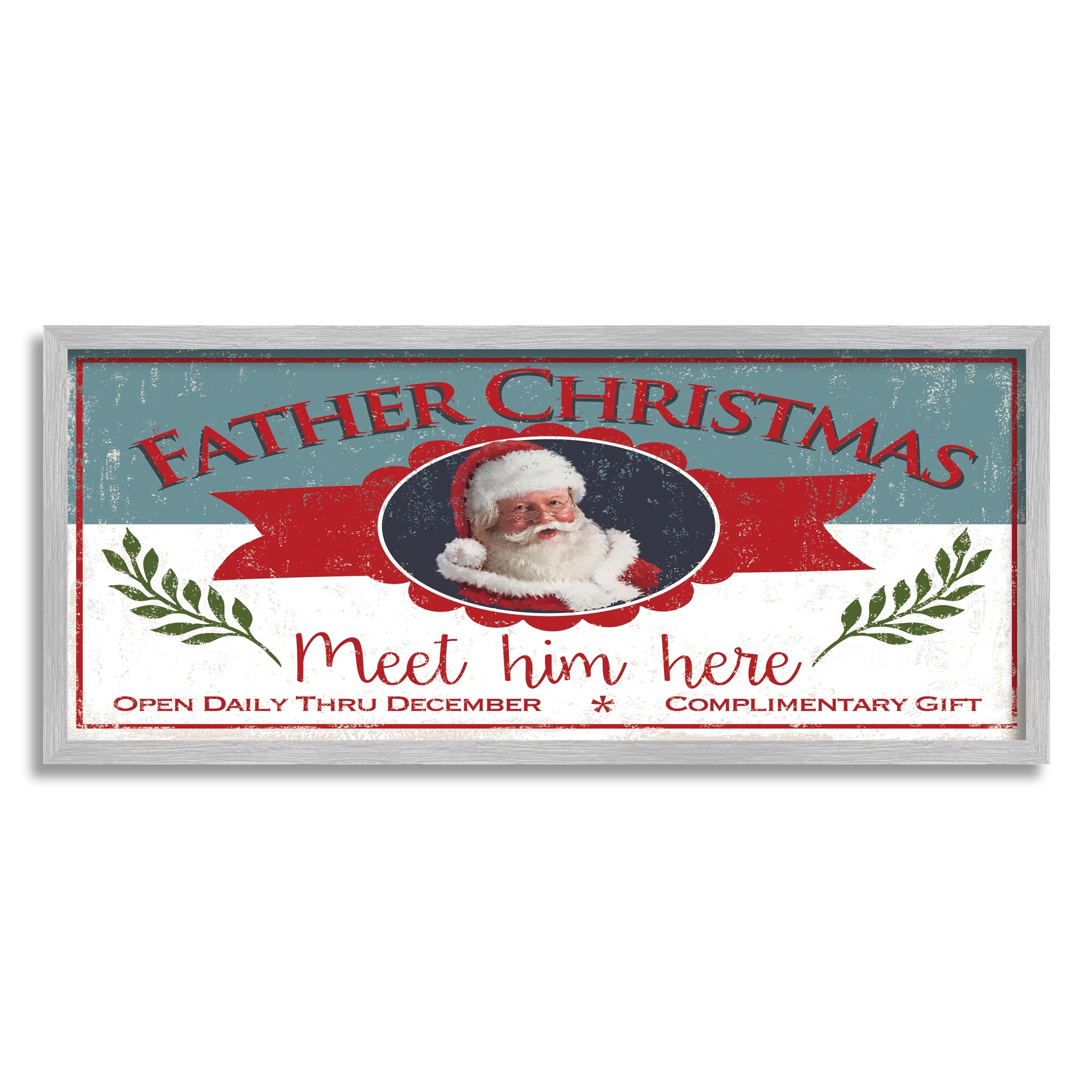 Stupell Industries Meet Father Christmas Santa Claus Weathered Sign Framed Wall Art - Multi-Color