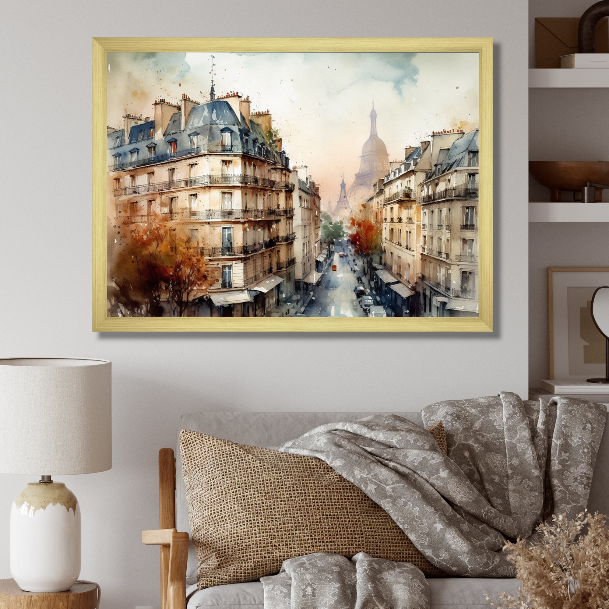 Designart "Watercolor Of Paris France Ii" City Paris Framed Wall Art for Living Room