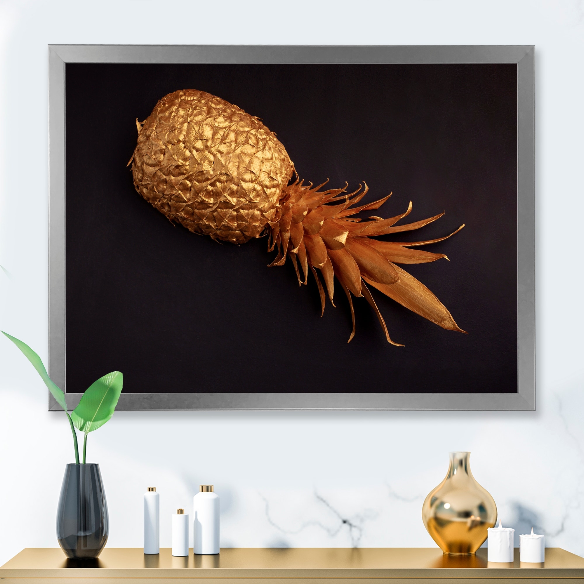 Designart "Gold Painted Tropical Fruits on Black III" Traditional Framed Art Print