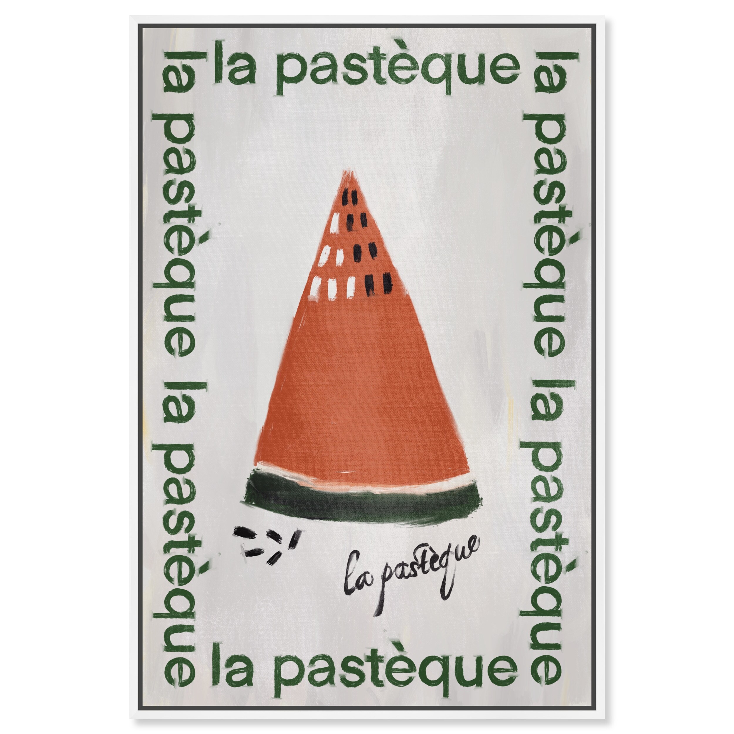 "La Pasteque", Geometric French Fruit Modern Red Framed Canvas Wall Art Print for Kitchen
