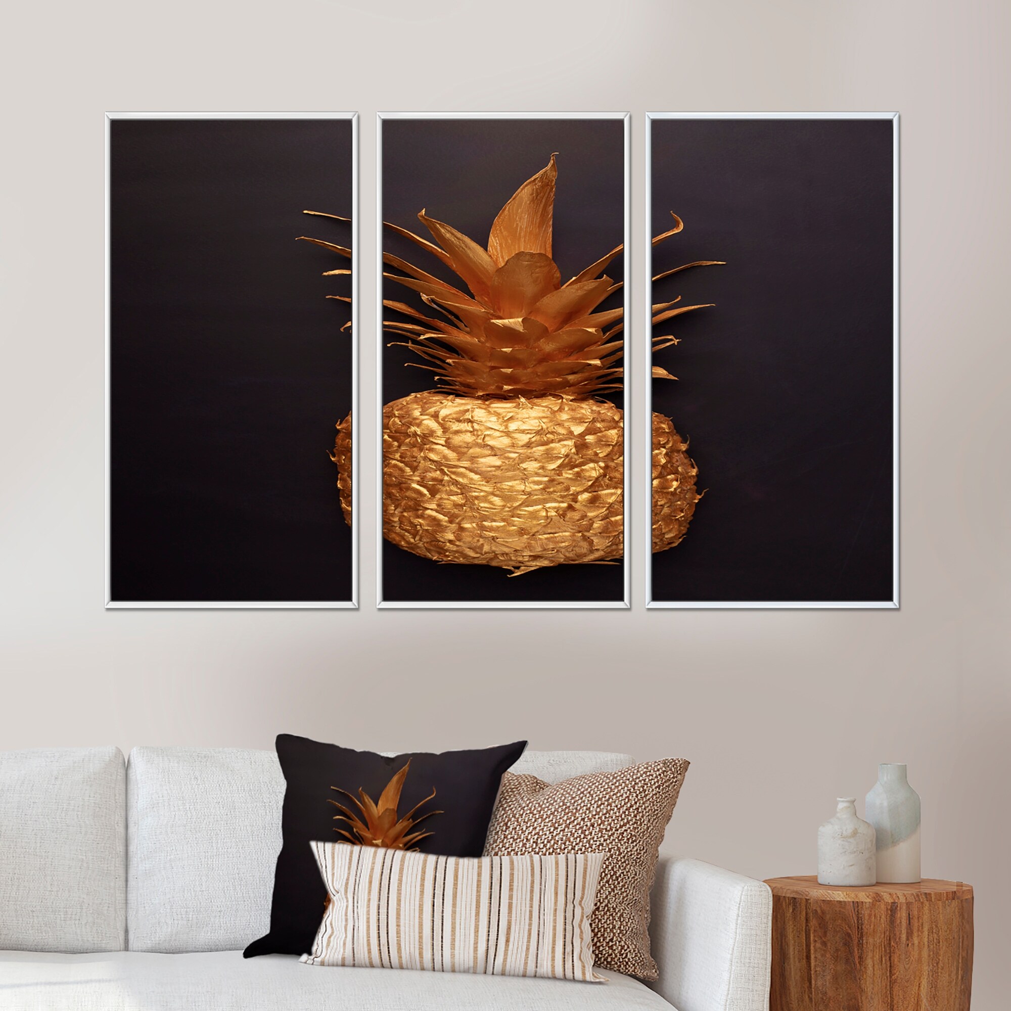 Designart "Gold Painted Tropical Fruits on Black III" Traditional Framed Wall Art Set of 3 - 4 Colors of Frames