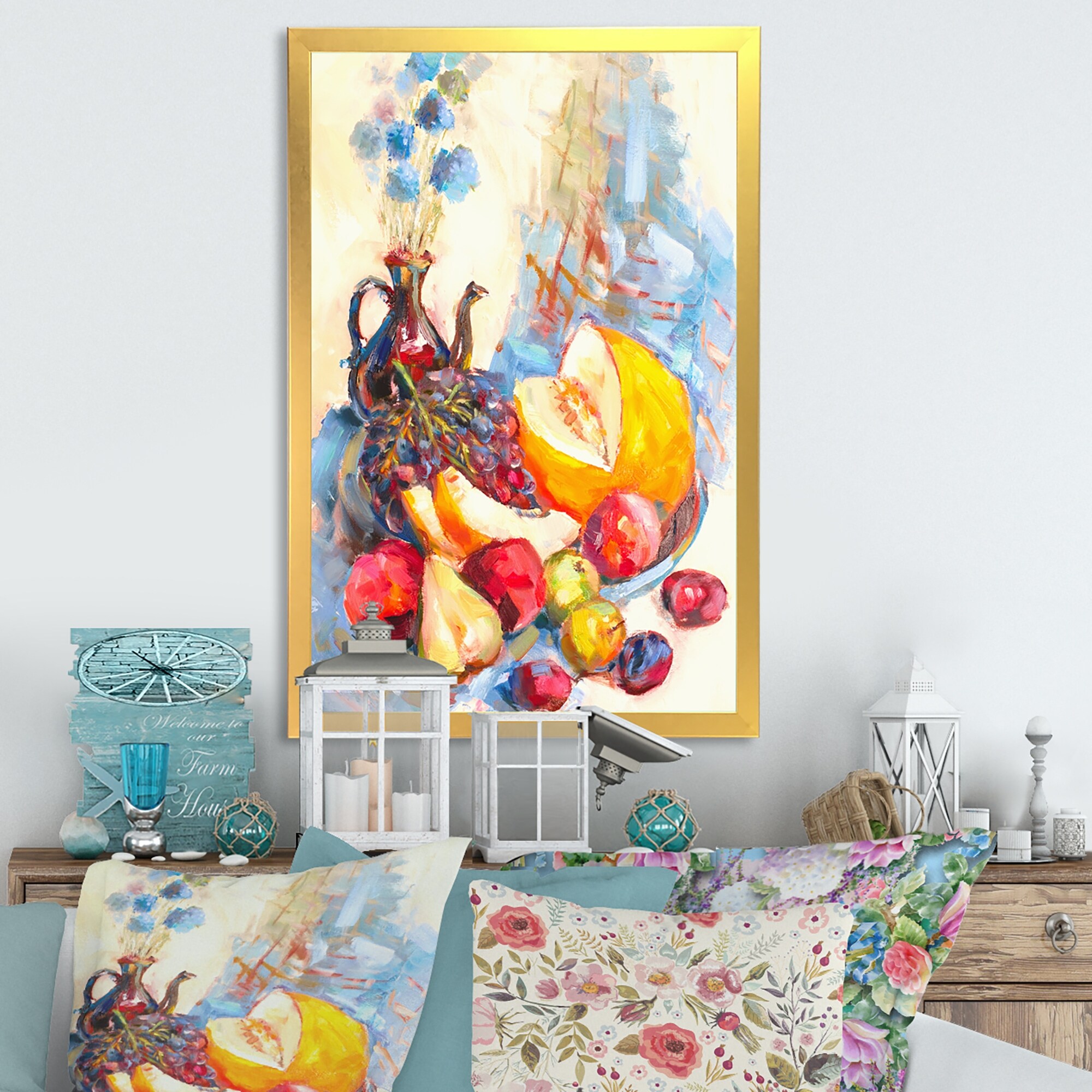 Designart "Flowers And Fruits Impressionism VI" Farmhouse Framed Wall Decor