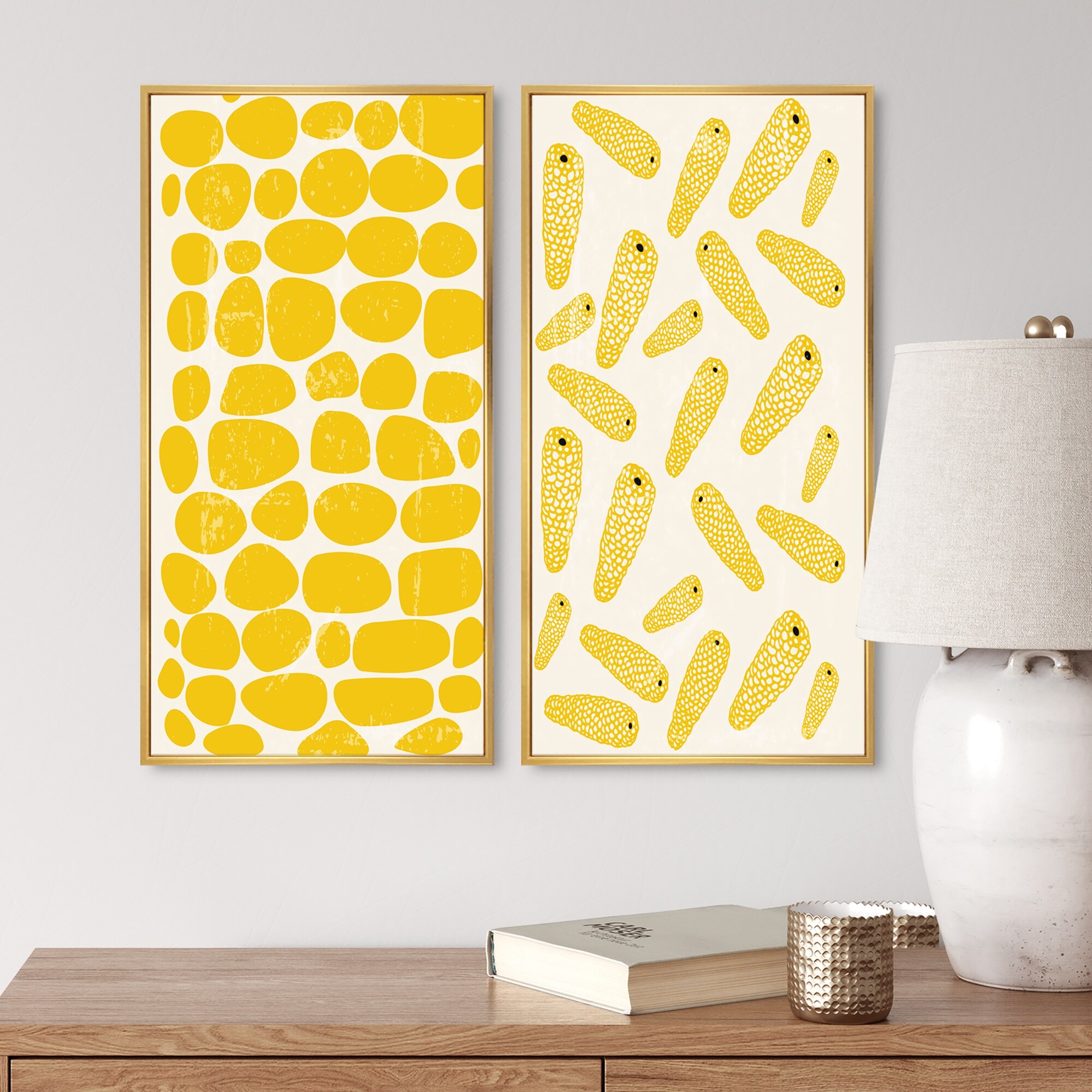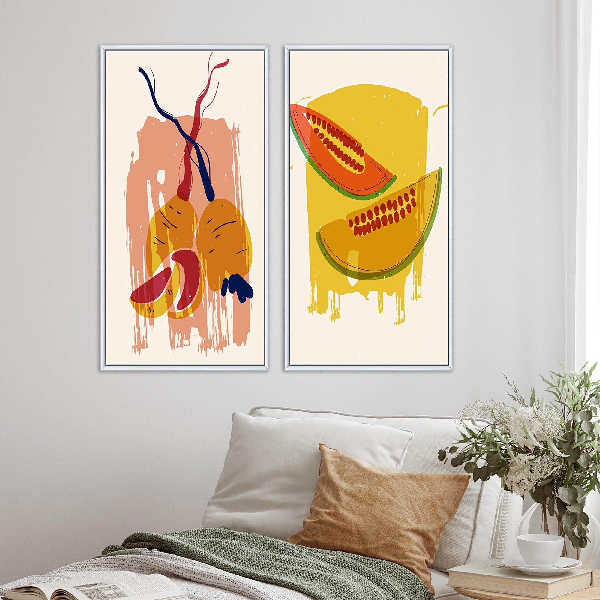 Designart "Organic Vintage Fruits I" Abstract Framed Art Set of 2 Pieces