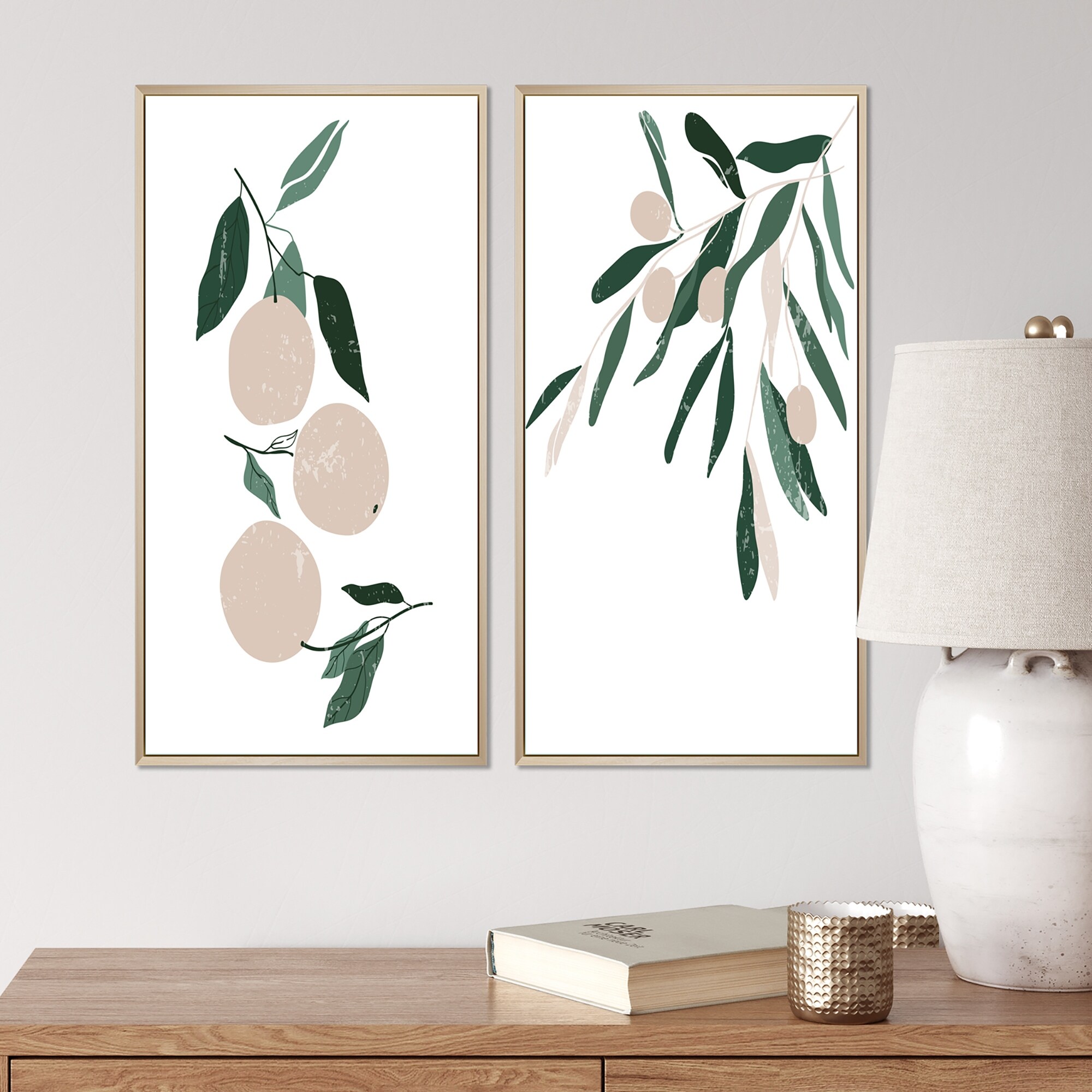 Designart "Green And Brown Vintage Southern Fruits I" Floral Framed Art Set of 2 Pieces