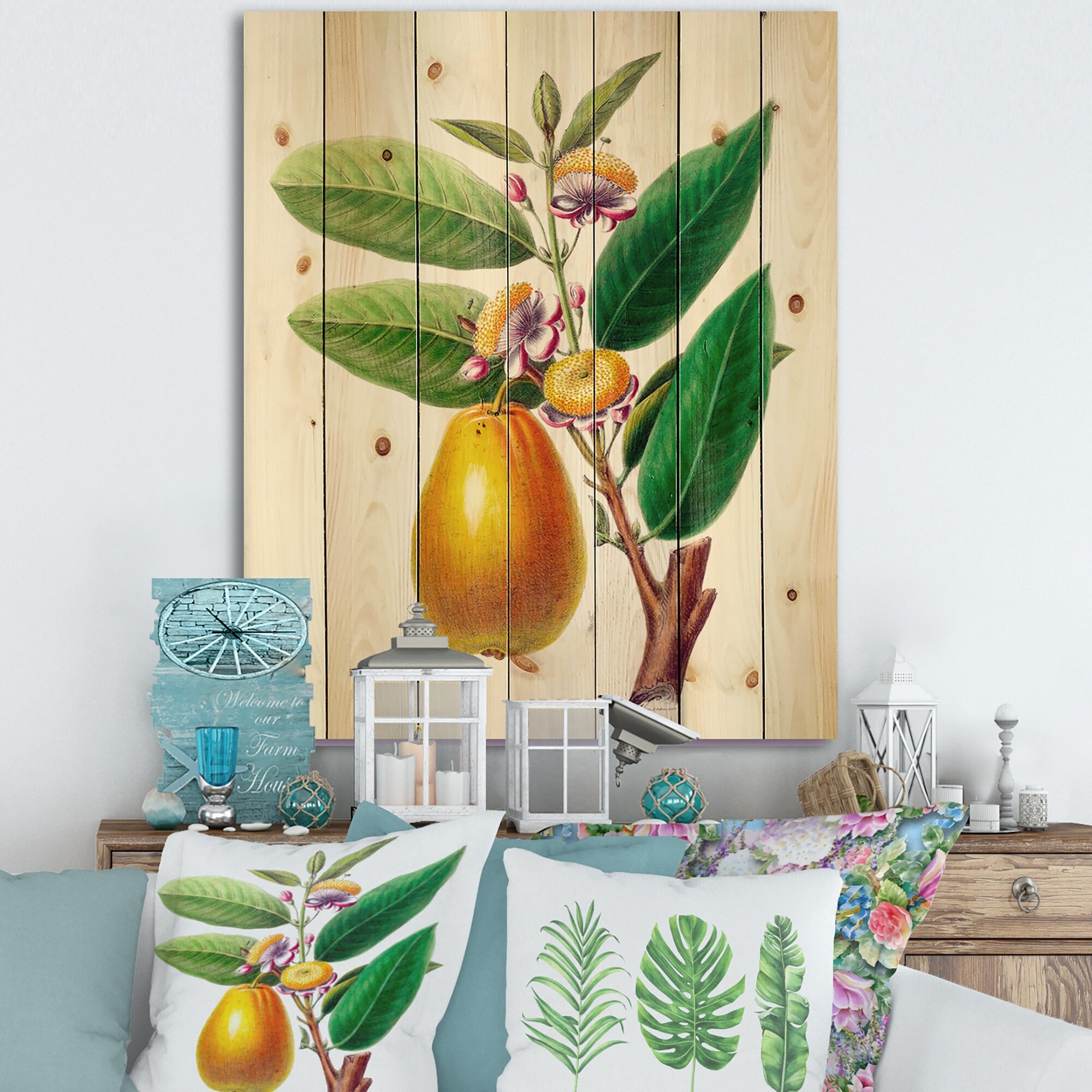 Designart 'Vintage Fruits I' Farmhouse Print on Natural Pine Wood
