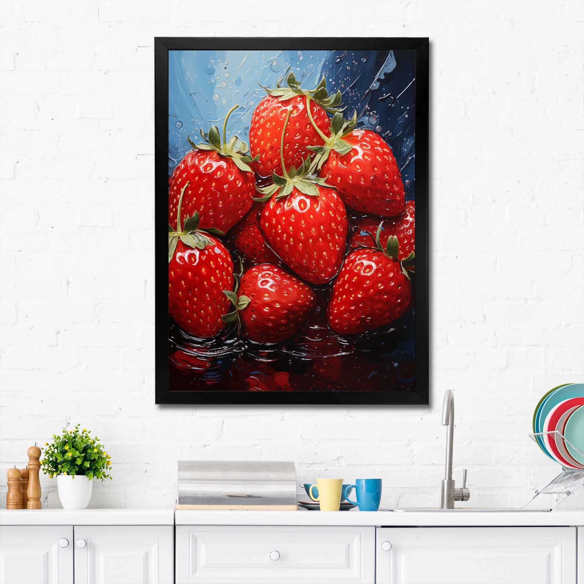 Designart "Fruit Sweet Strawberry Pointillism II" Fruits Framed Wall Art Prints
