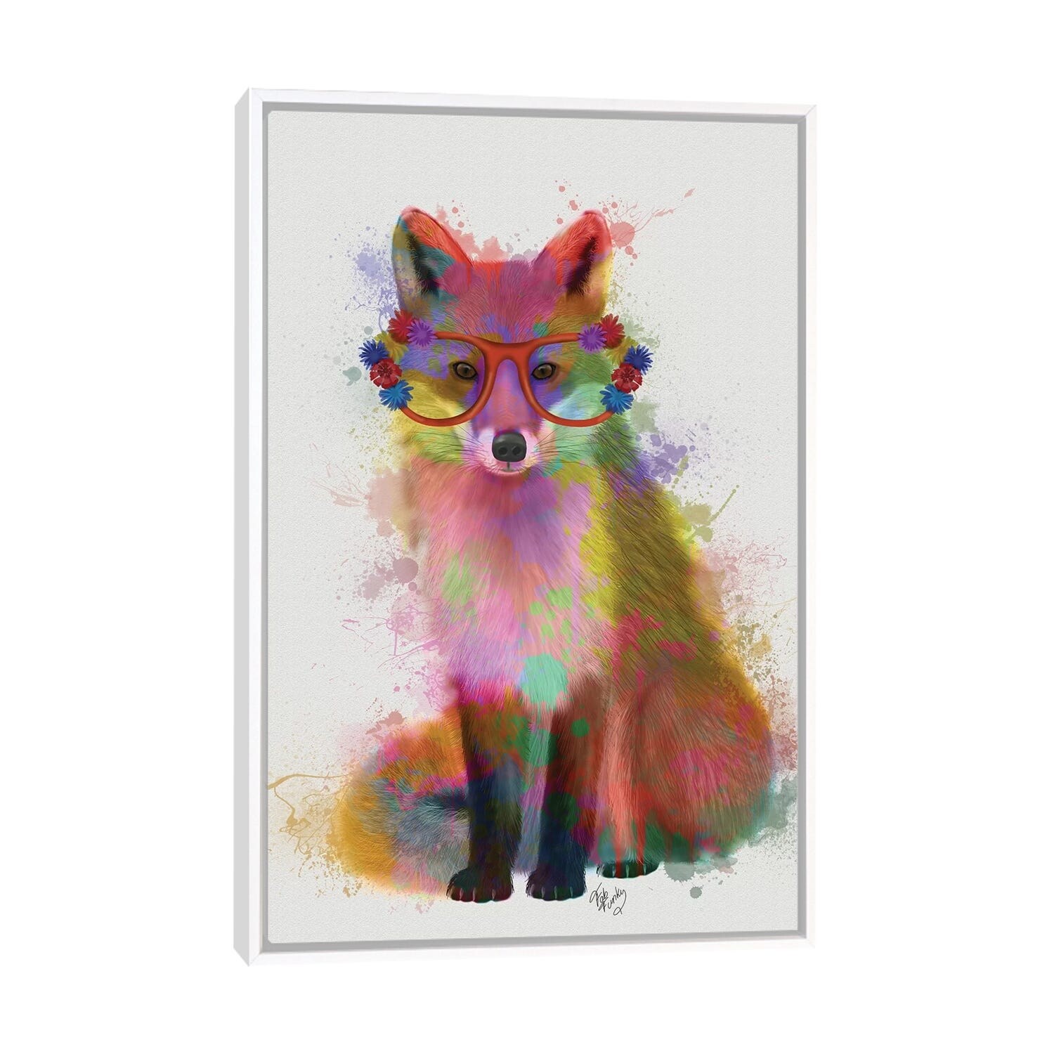 iCanvas "Rainbow Splash F0x II" by Fab Funky Framed