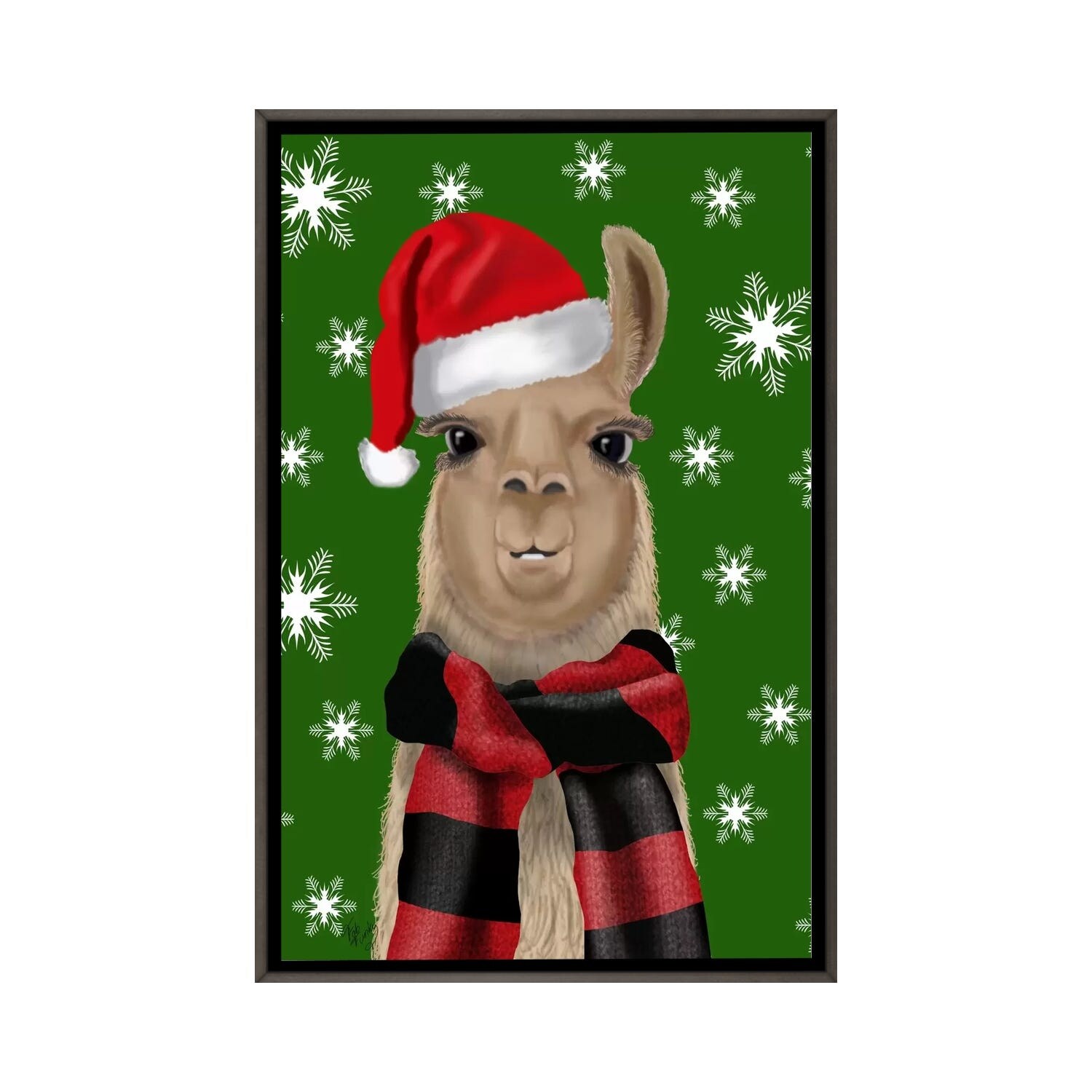 iCanvas "Llama, Christmas Hat" by Fab Funky Framed
