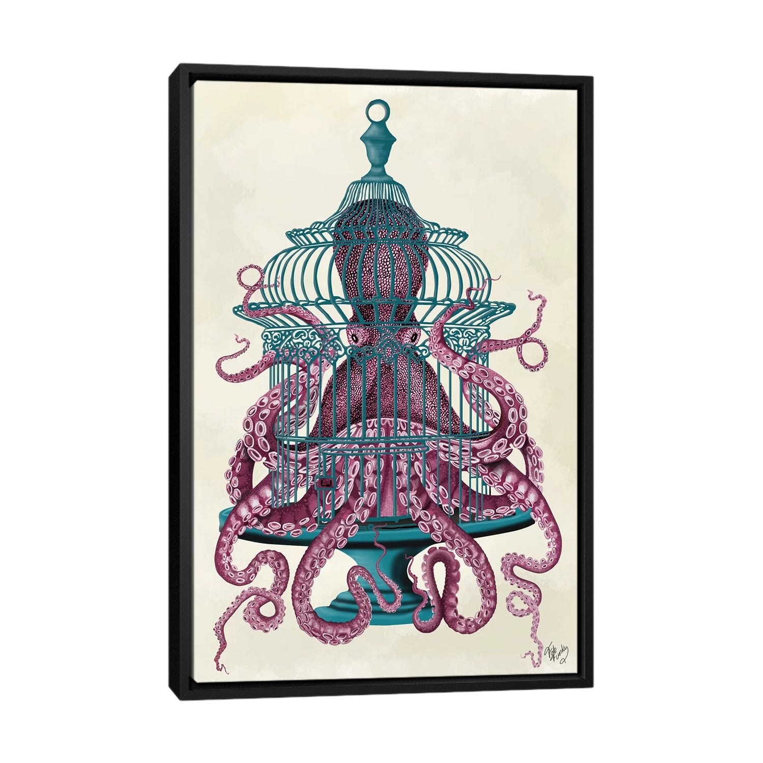 iCanvas "Pink Octopus in Cage" by Fab Funky Framed