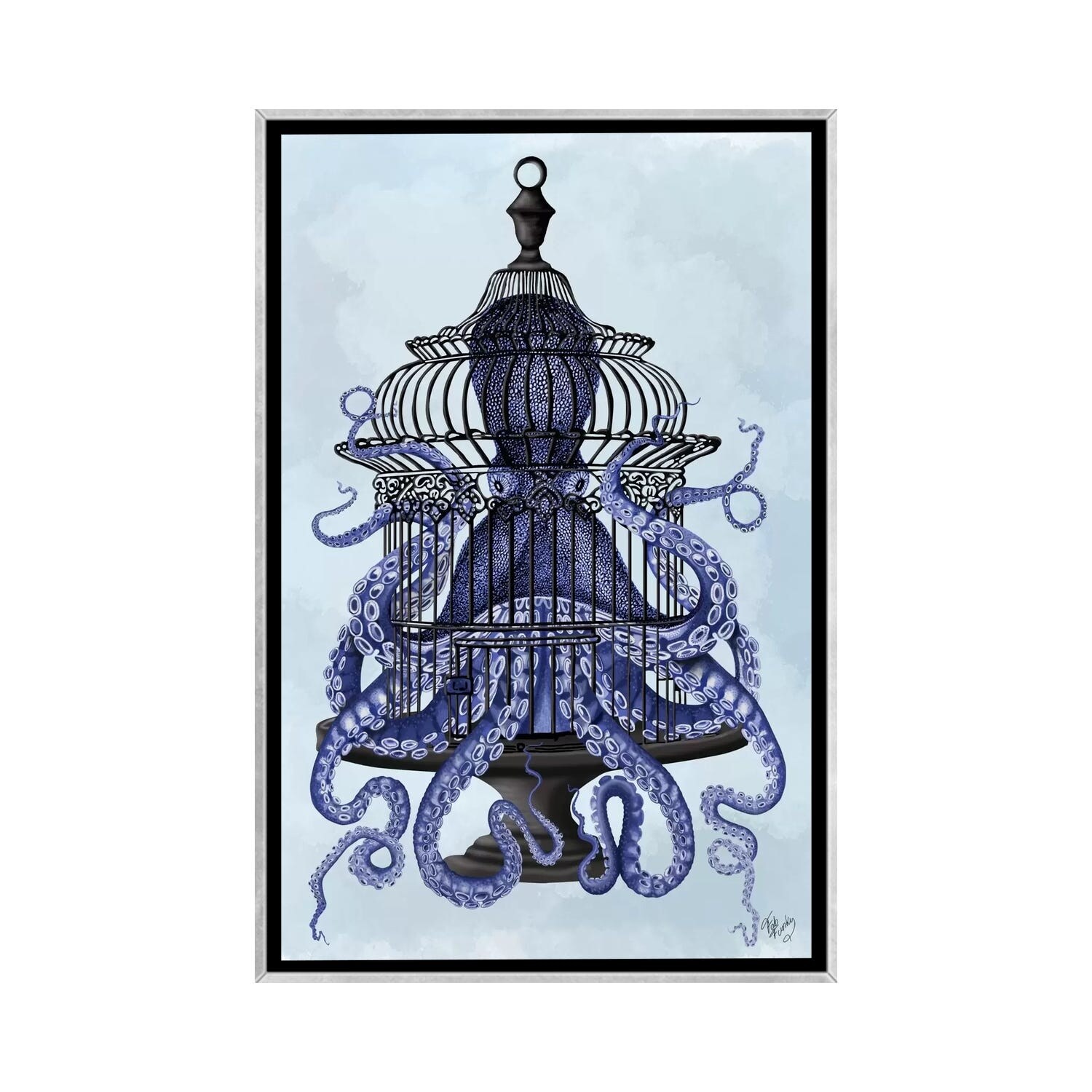 iCanvas "Blue Octopus in Cage" by Fab Funky Framed