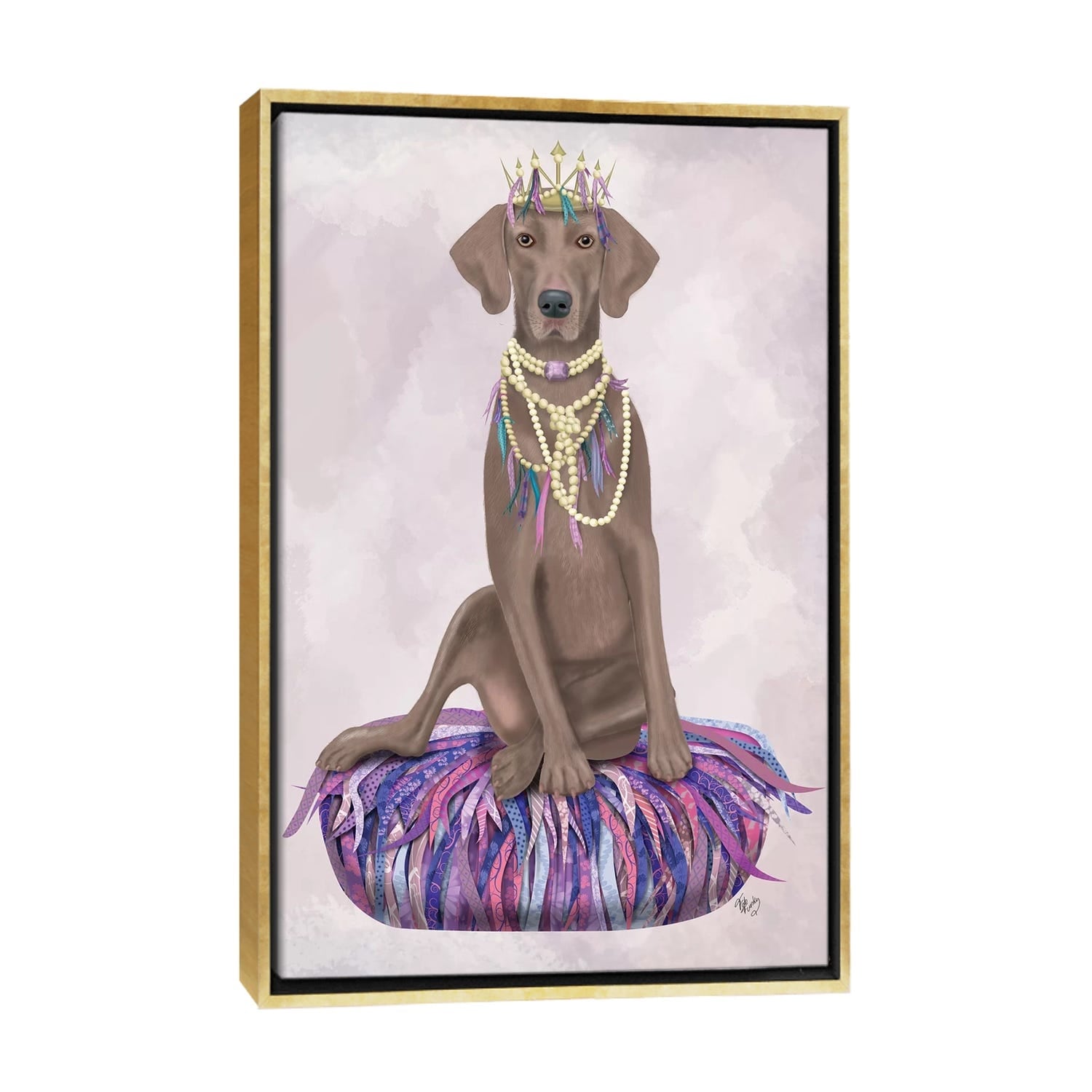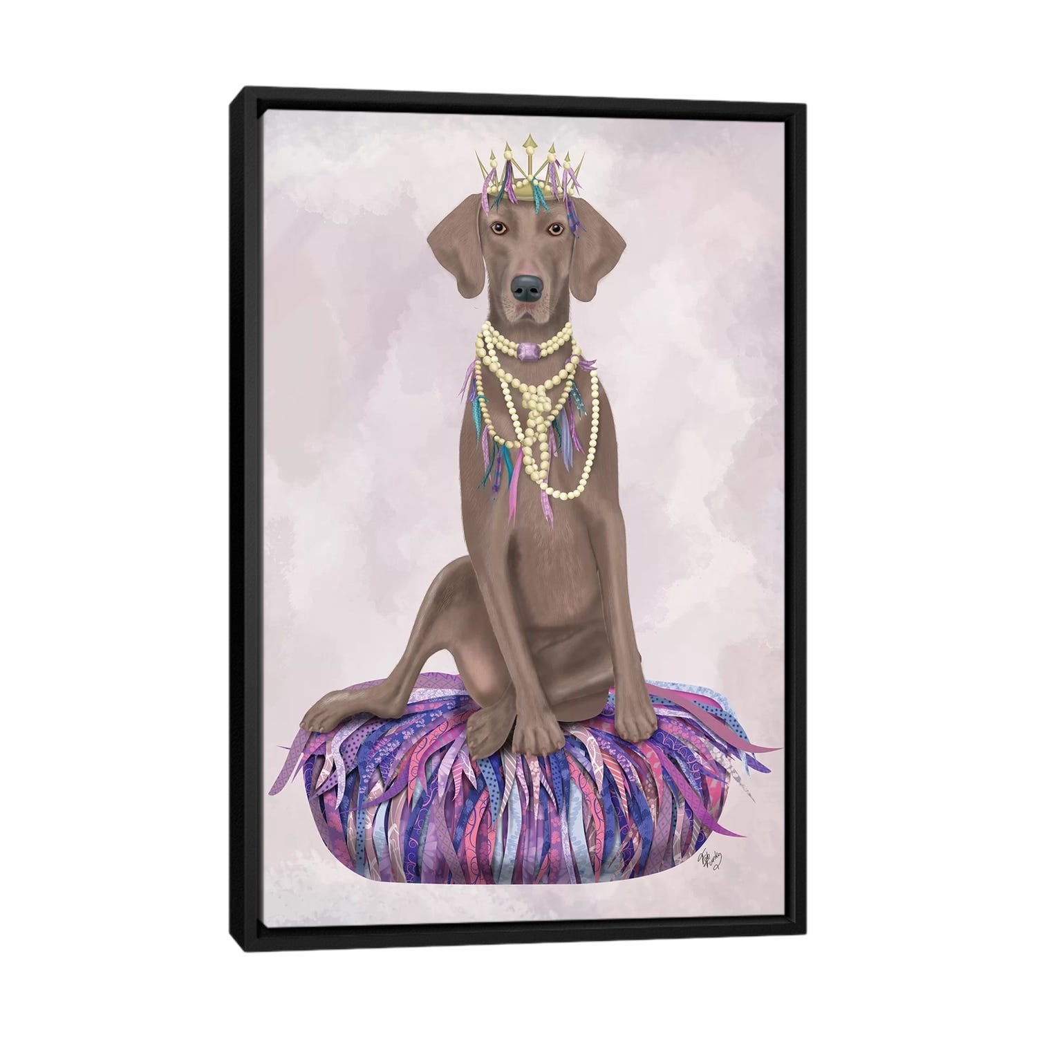 iCanvas "Weimaraner on Purple Cushion I" by Fab Funky Framed Canvas Print