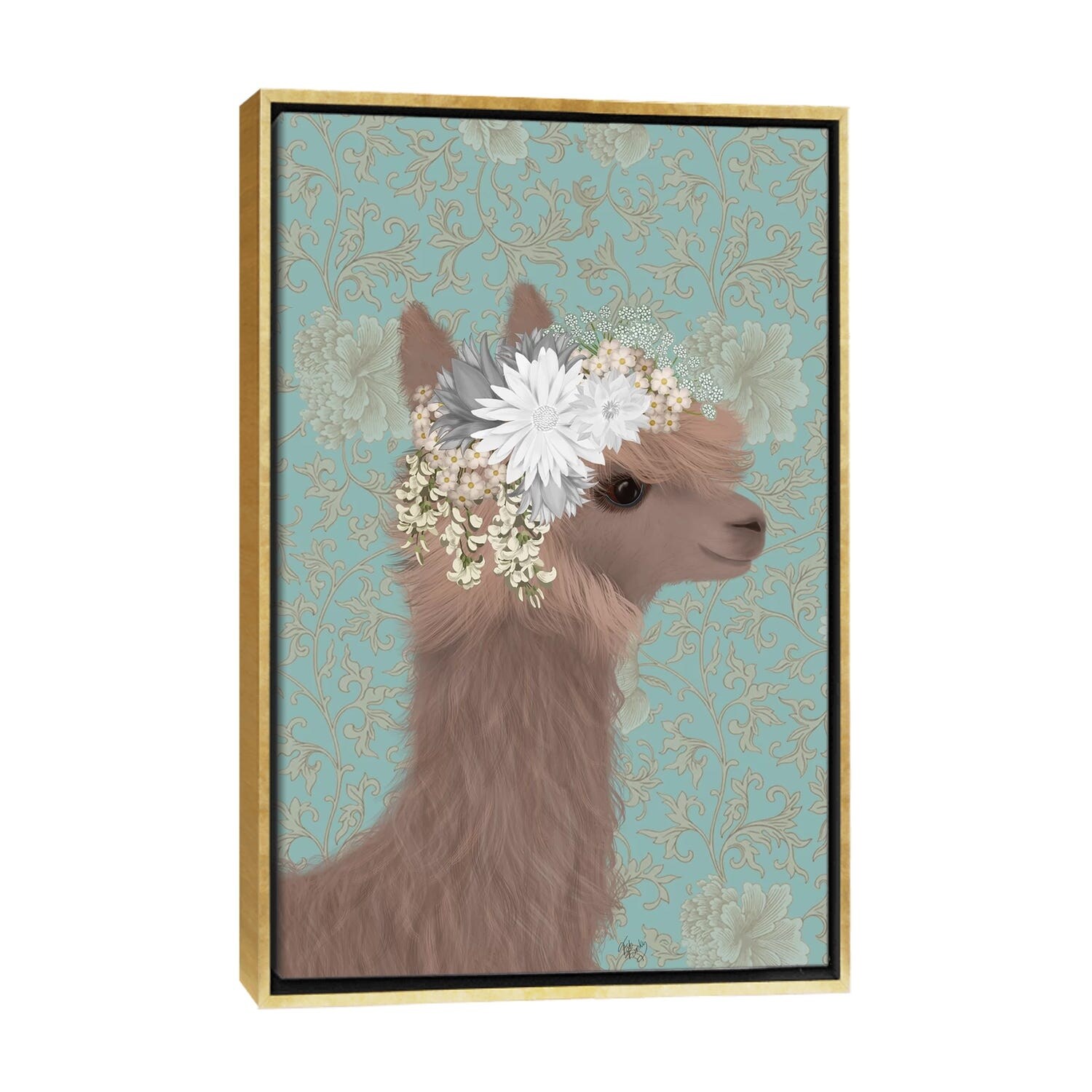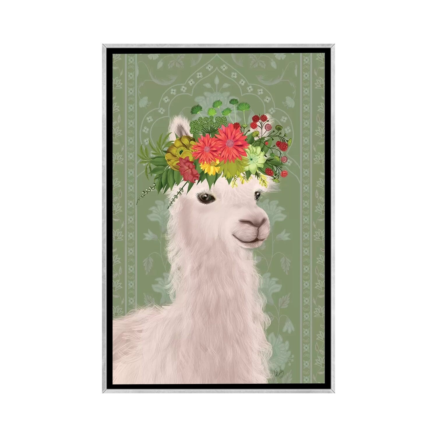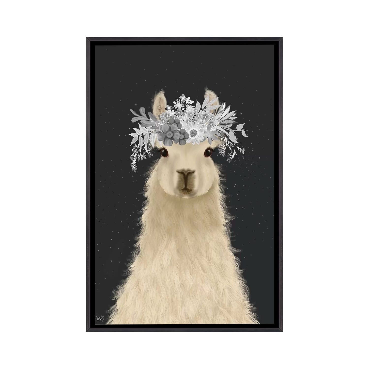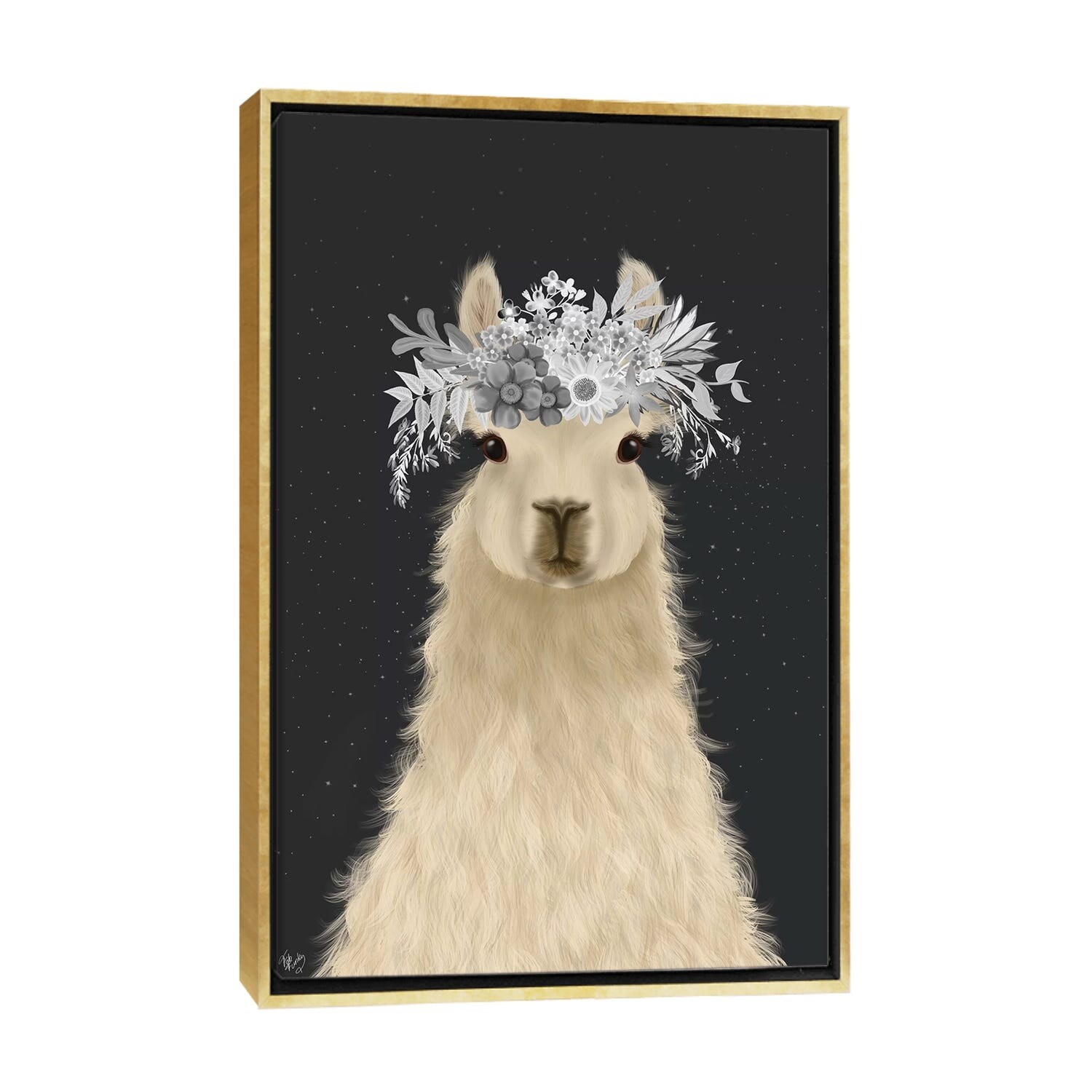 iCanvas "Llama White Flowers" by Fab Funky Framed