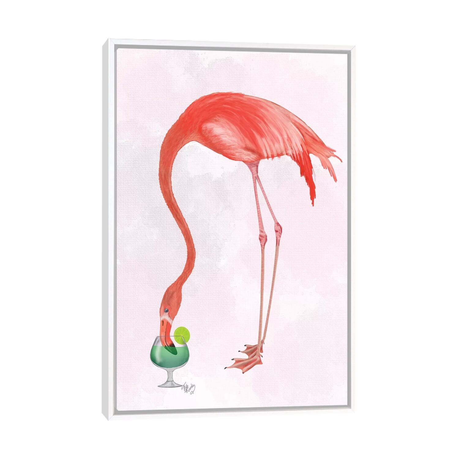iCanvas "Flamingo and Cocktail II-I" by Fab Funky Framed