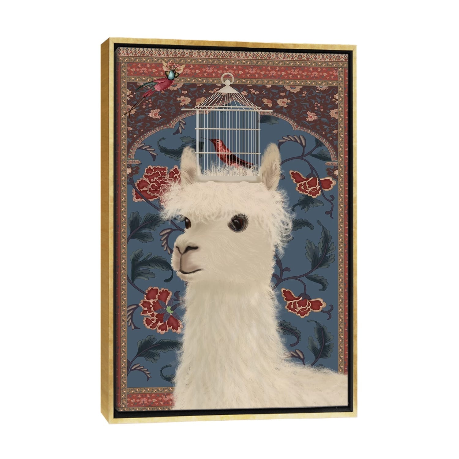 iCanvas "Llama and Birdcage" by Fab Funky Framed Canvas Print