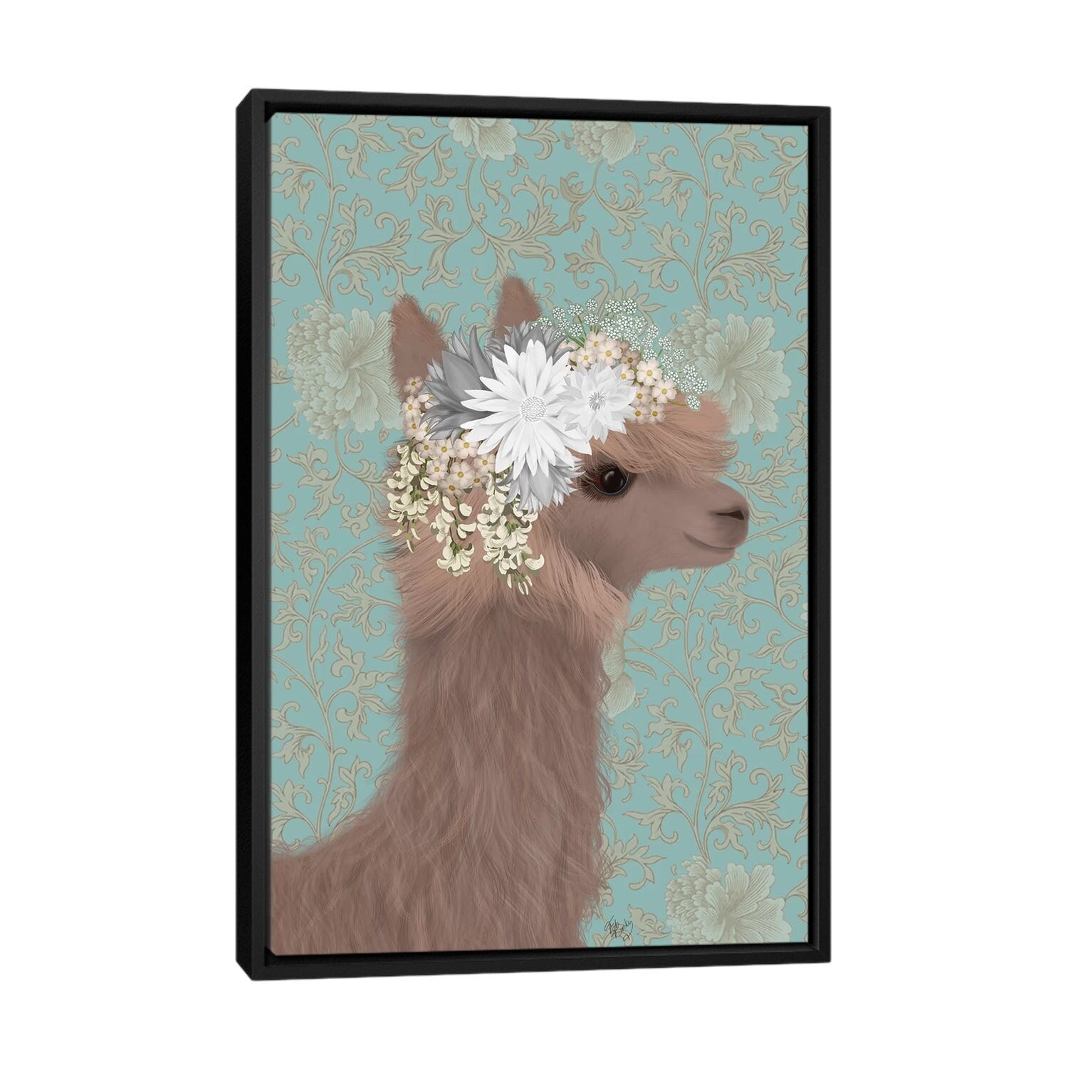 iCanvas "Llama White Flowers" by Fab Funky Framed Canvas Print