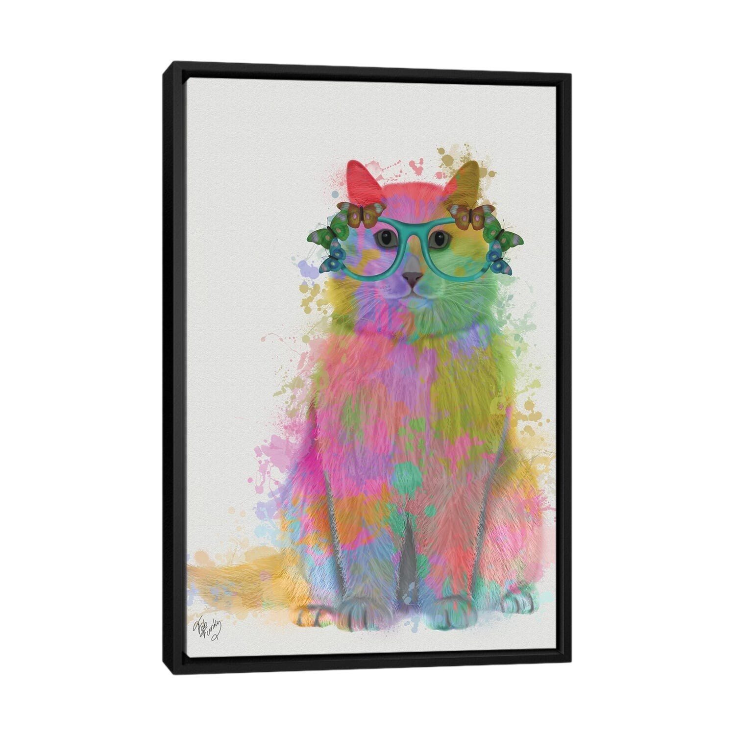 iCanvas "Rainbow Splash Cat III, Full" by Fab Funky Framed