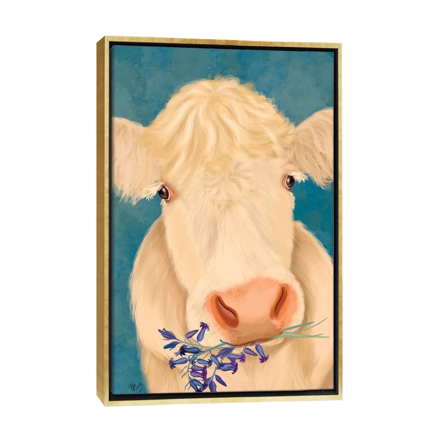 iCanvas "Cow Cream, Bluebells" by Fab Funky Framed