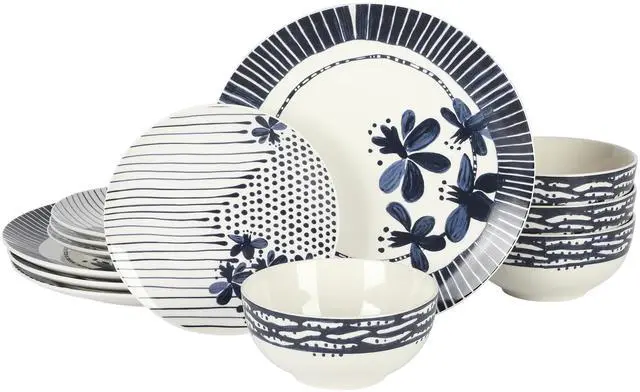 Gibson Home Eliza 12 Piece Ceramic Dinnerware Set