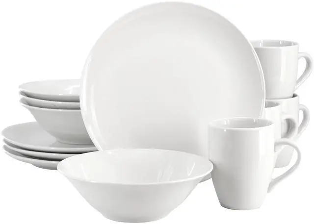 Gibson Home Wintercap 12 Piece Fine Ceramic Dinnerware Set in White