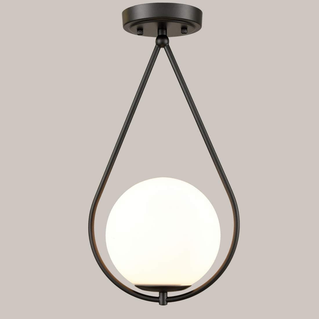 Milos Mid Century Globe Semi Flush Mount Ceiling Light Opal Glass Shade