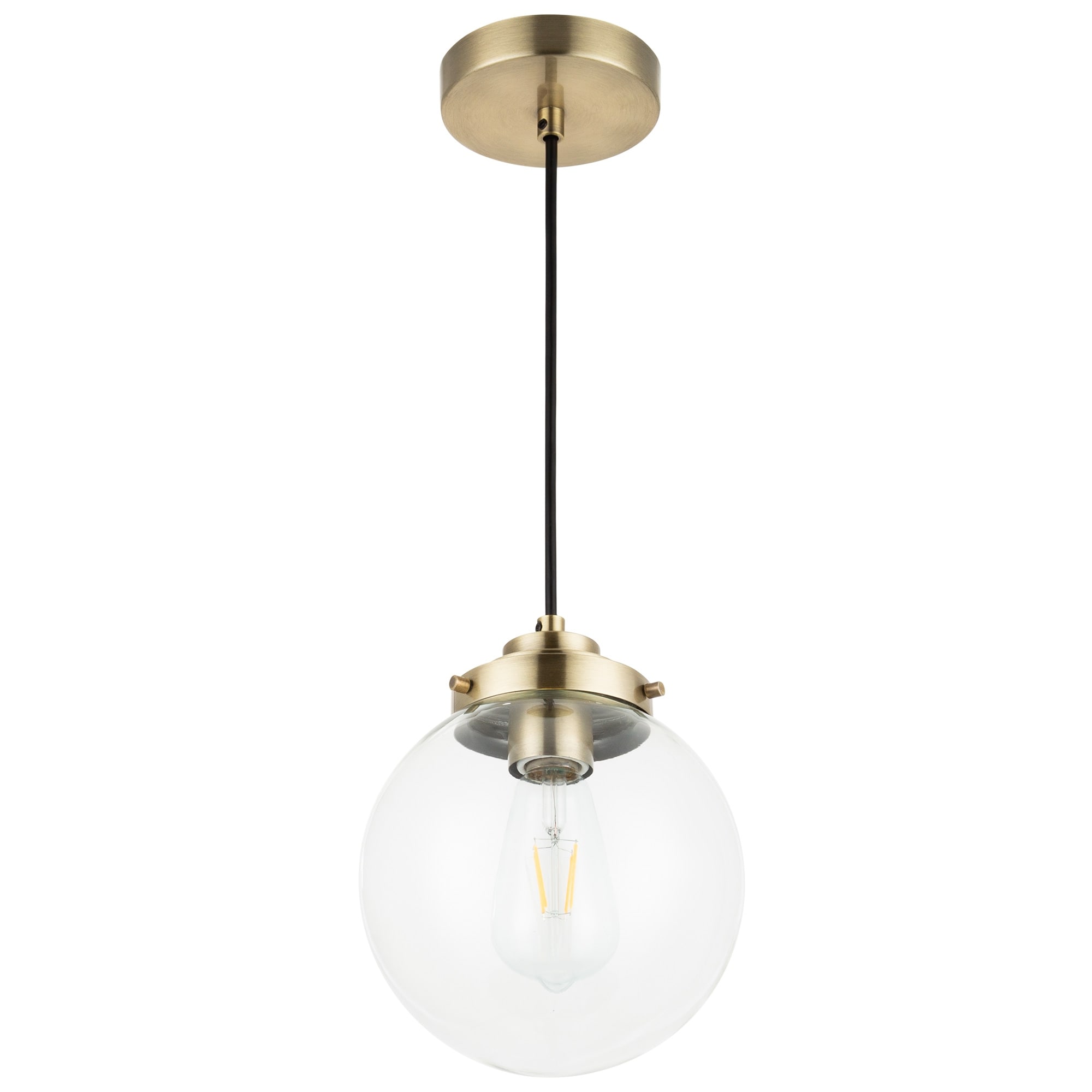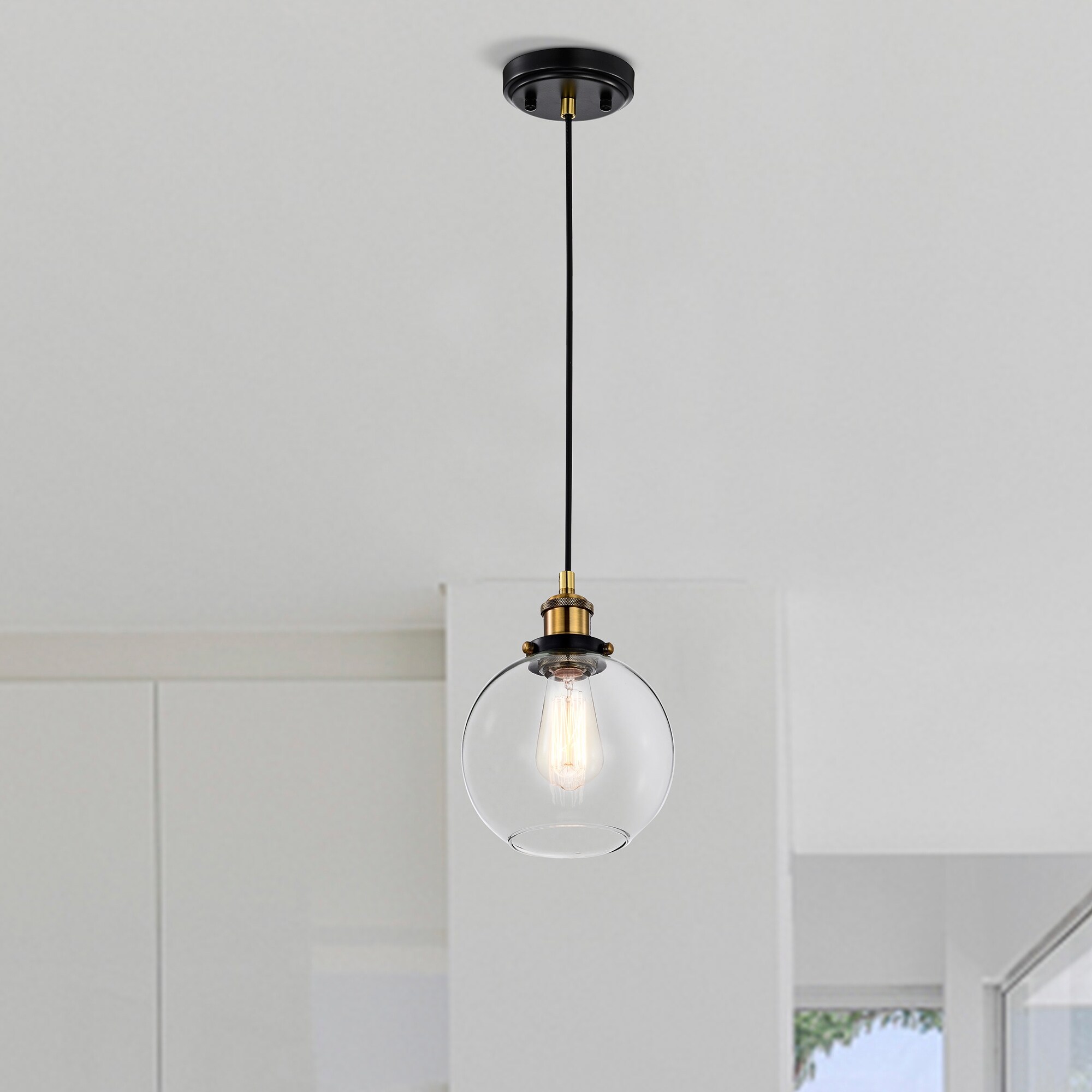 Black and Antique Brass 1-Light Mini Pendant with Clear Globe Glass Shade - Black and Antique Brass