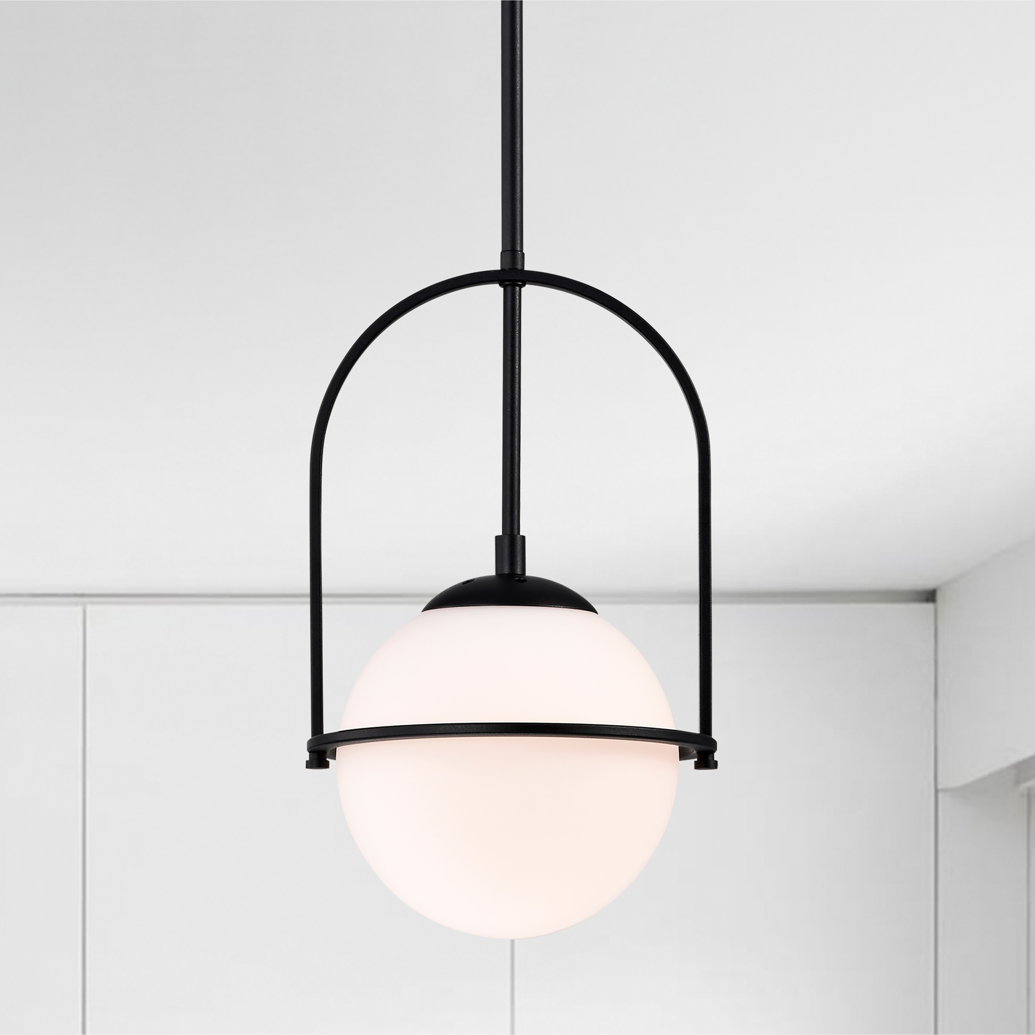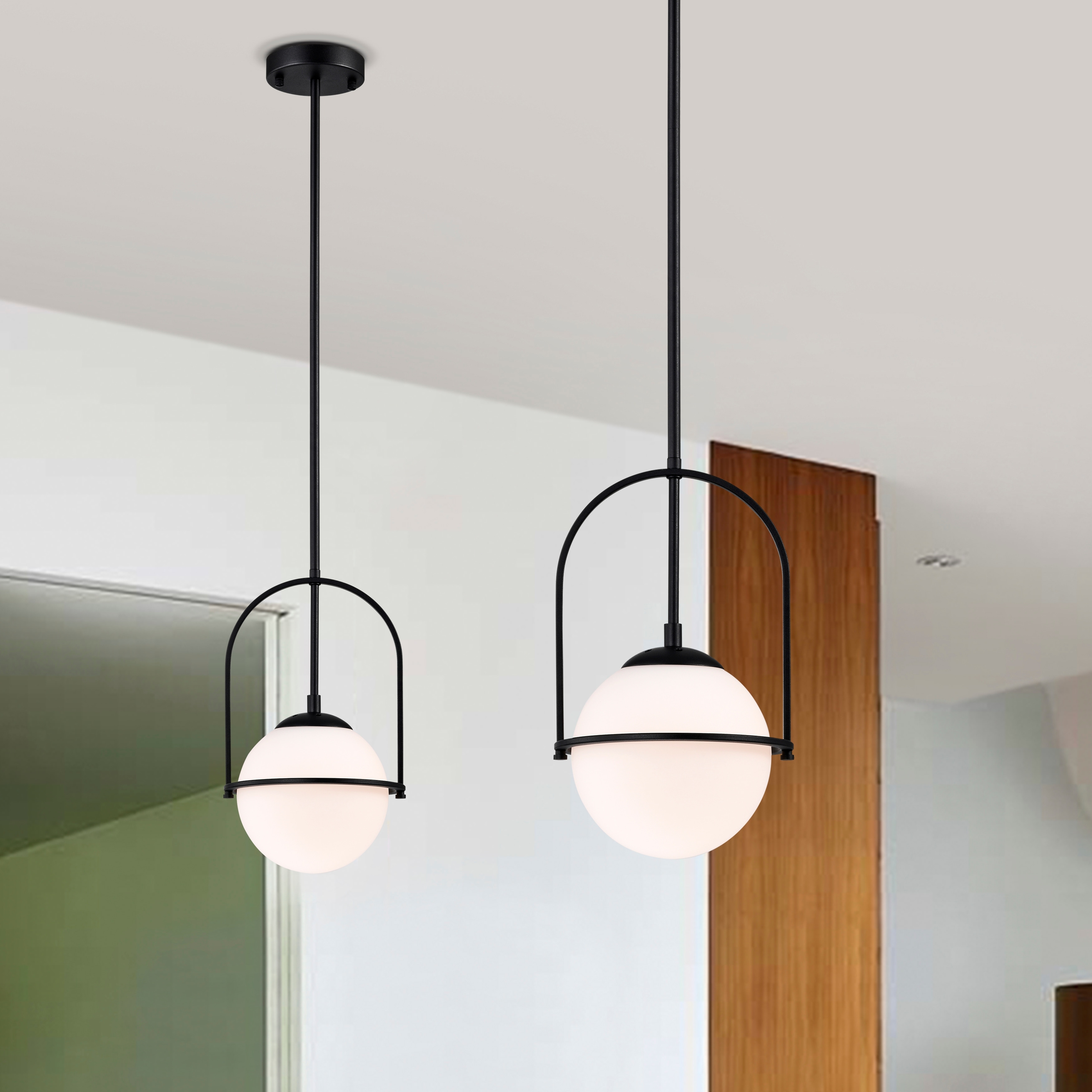 YANSUN 60-Watt 1-Light Straight Black Globe Pendant Light Modern Mid-century Hanging Light with White Frosted Glass Shade