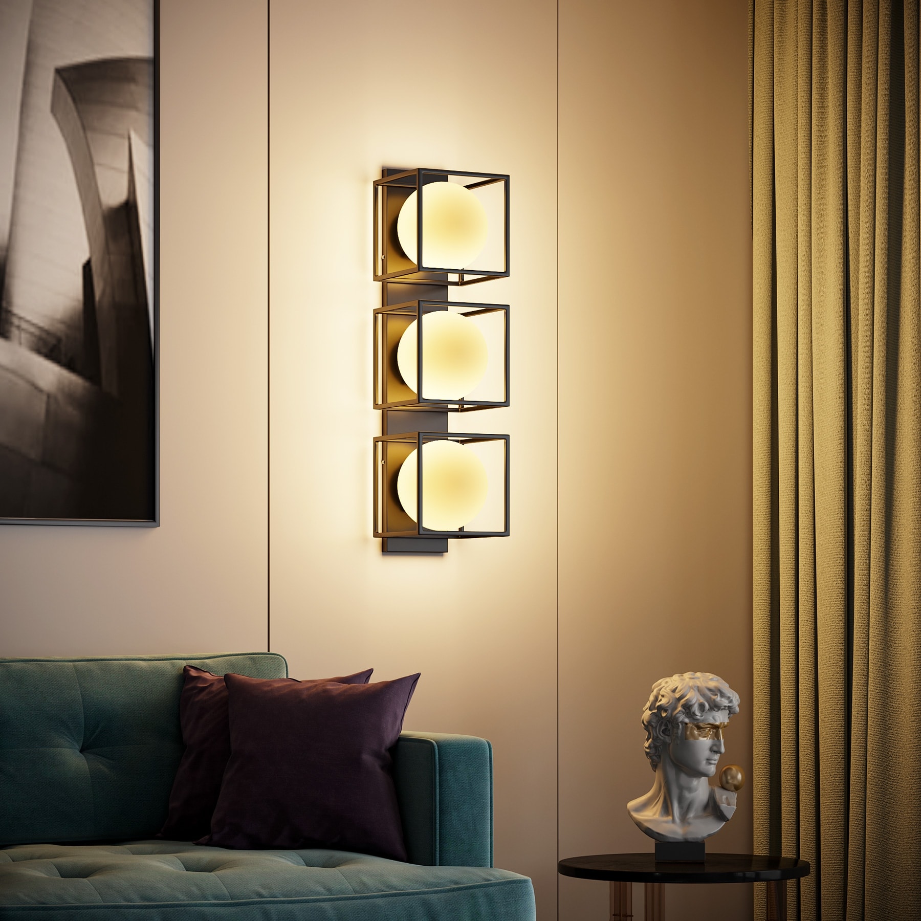 Icey 1-Light Modern Frosted Glass LED Black Gold Wall Sconce Globe Bathroom Vanity Light - 4.7" L x 12" W x 15" H