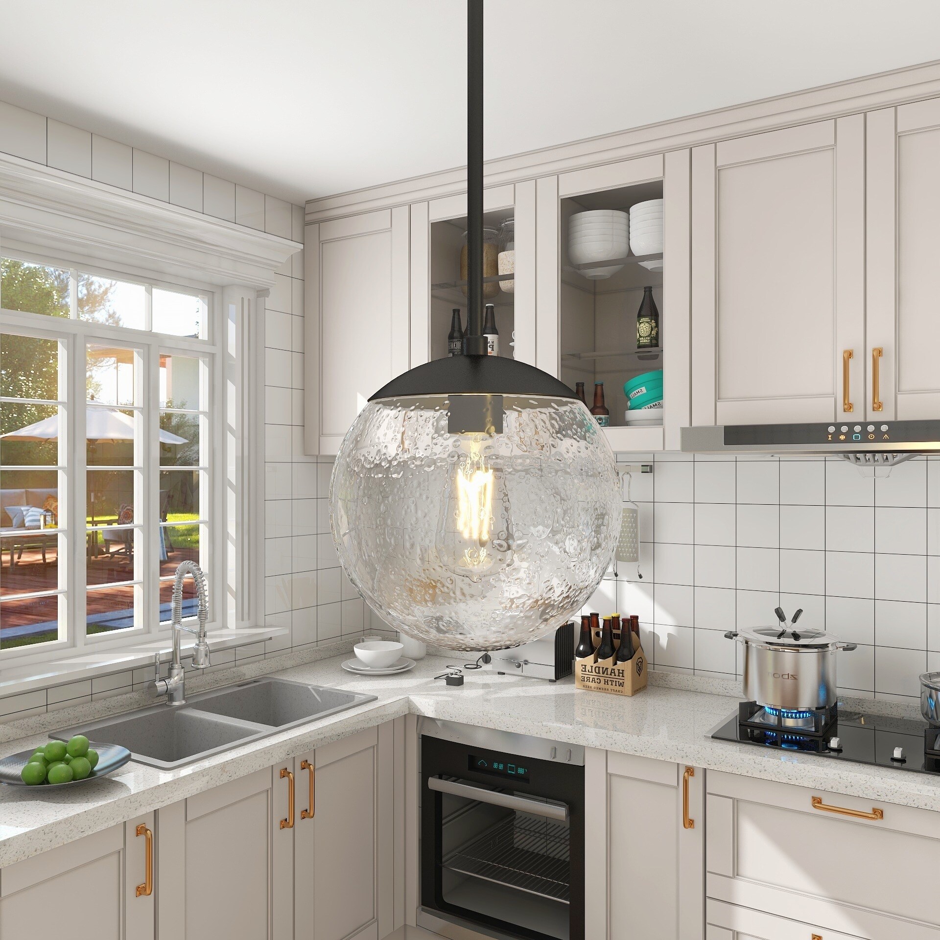 Matte Black Globe Pendant Lighting Kitchen Hanging Lights with Clear Seed Glass