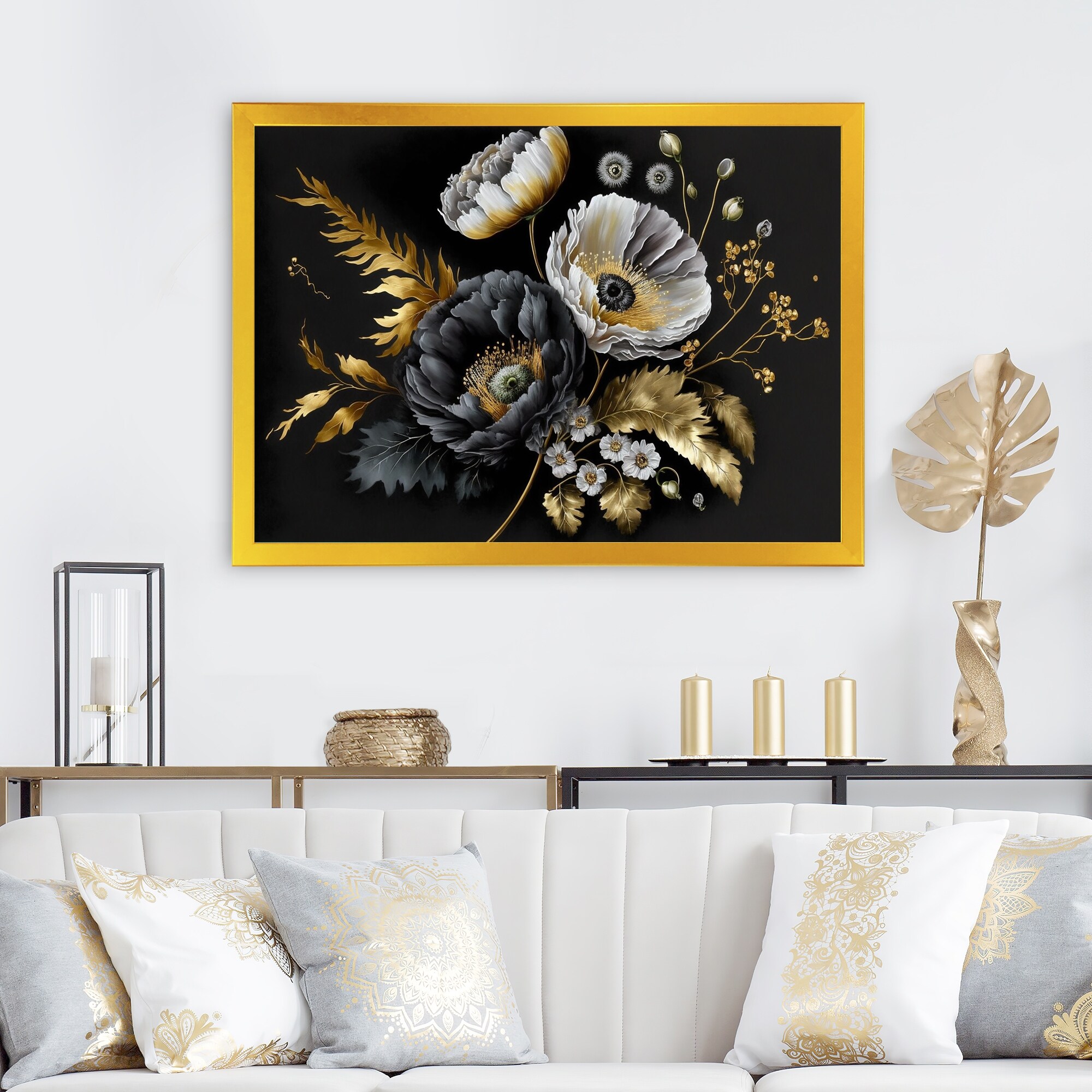 Designart "Golden Gothic Floral Bouquet II" Floral & Botanical Framed Canvas Art Print