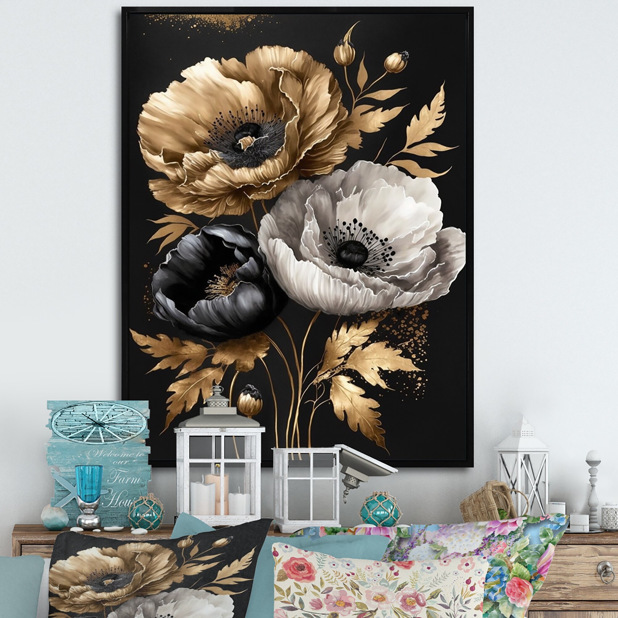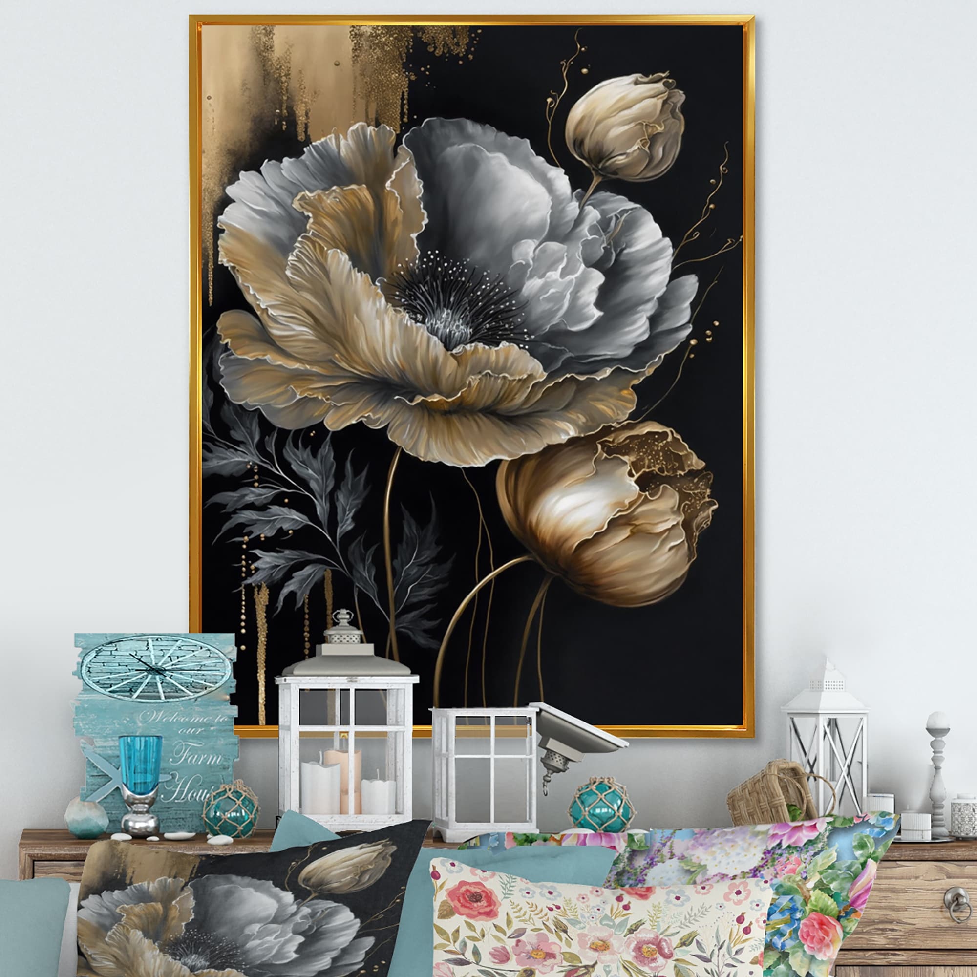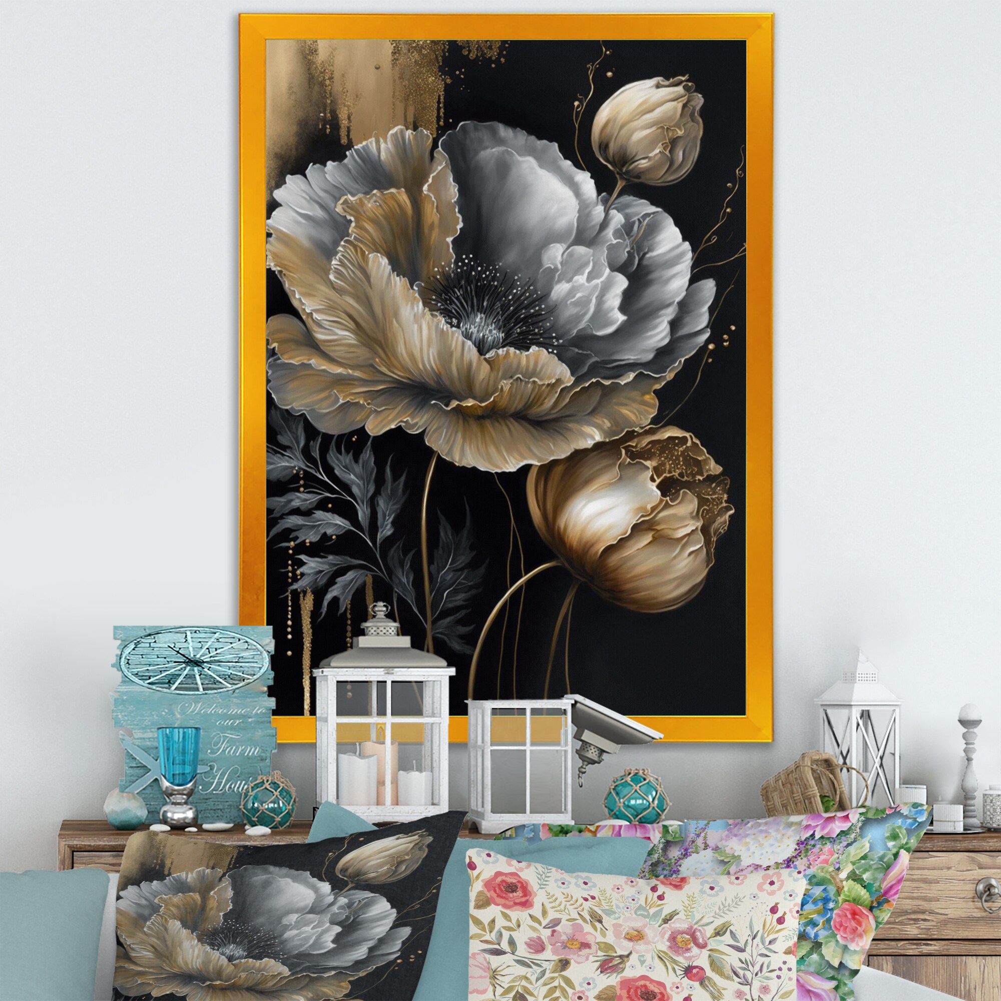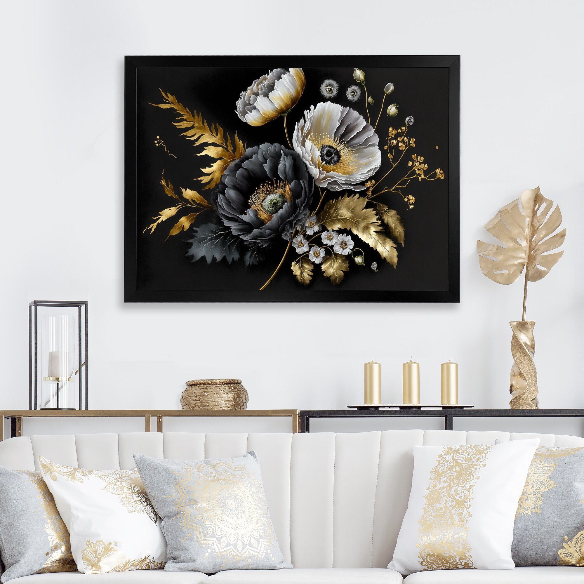 Designart "Golden Gothic Floral Bouquet I" Floral & Botanical Framed Canvas Art Print