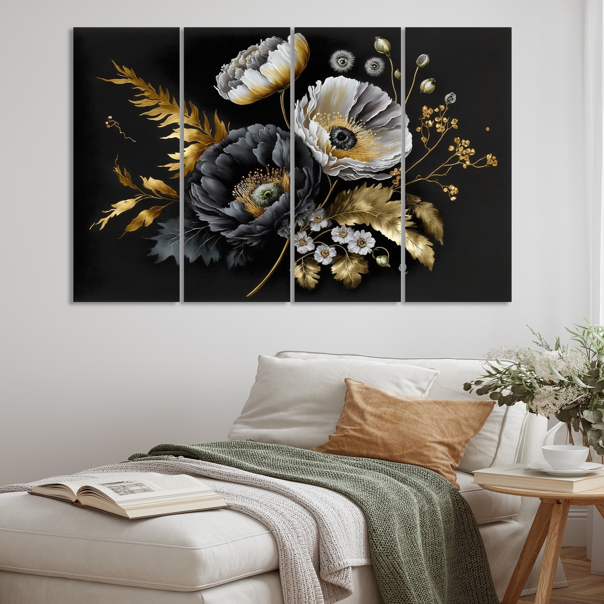 Designart "Golden Gothic Floral Bouquet II" Floral Multipanel Canvas Prints