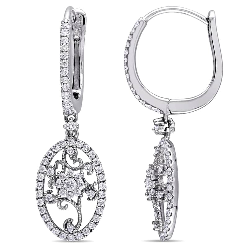 Miadora Signature Collection 14k White Gold 7/8ct TDW Diamond Filigree Halo Leverback Earrings
