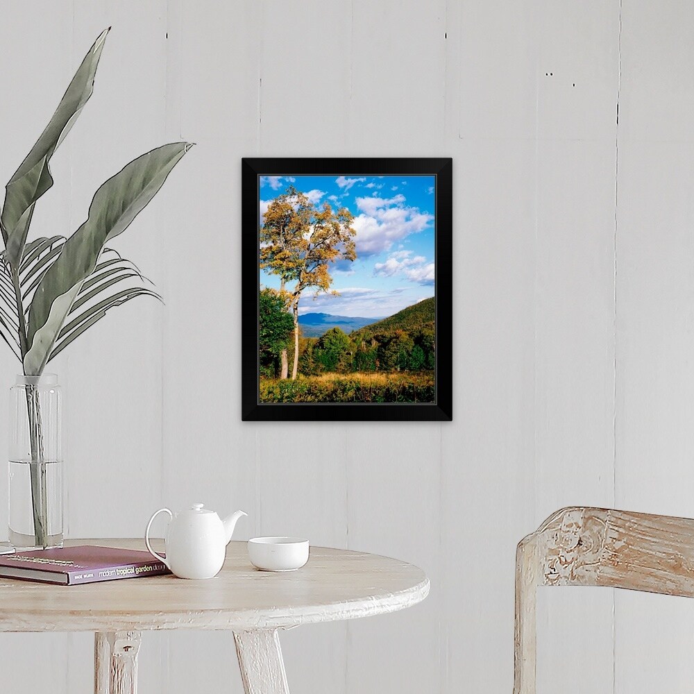 "New Hampshire, White Mountain National Forest, Kancamagus Pass, Trees in front of mountains" Black Framed Print