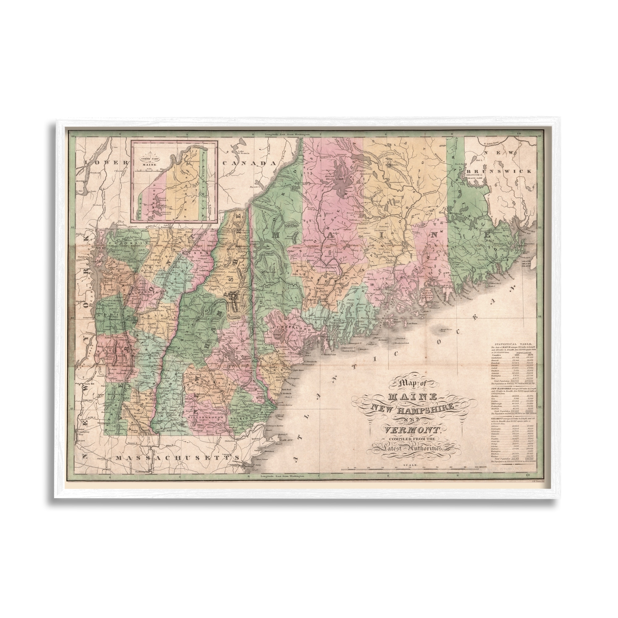 Stupell Northern New England Map Maine Vermont New Hampshire Framed Wall Art