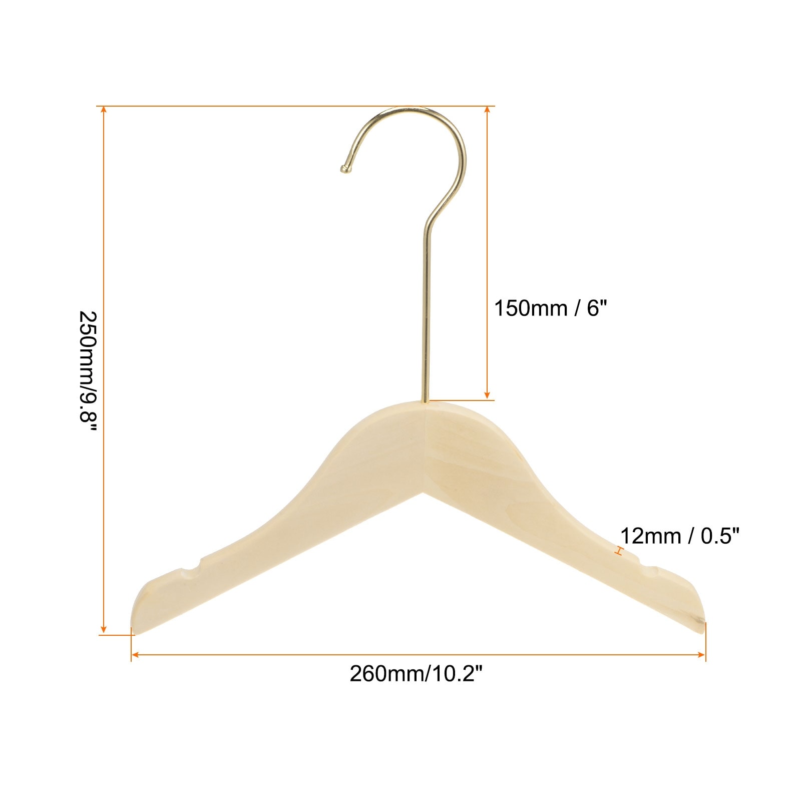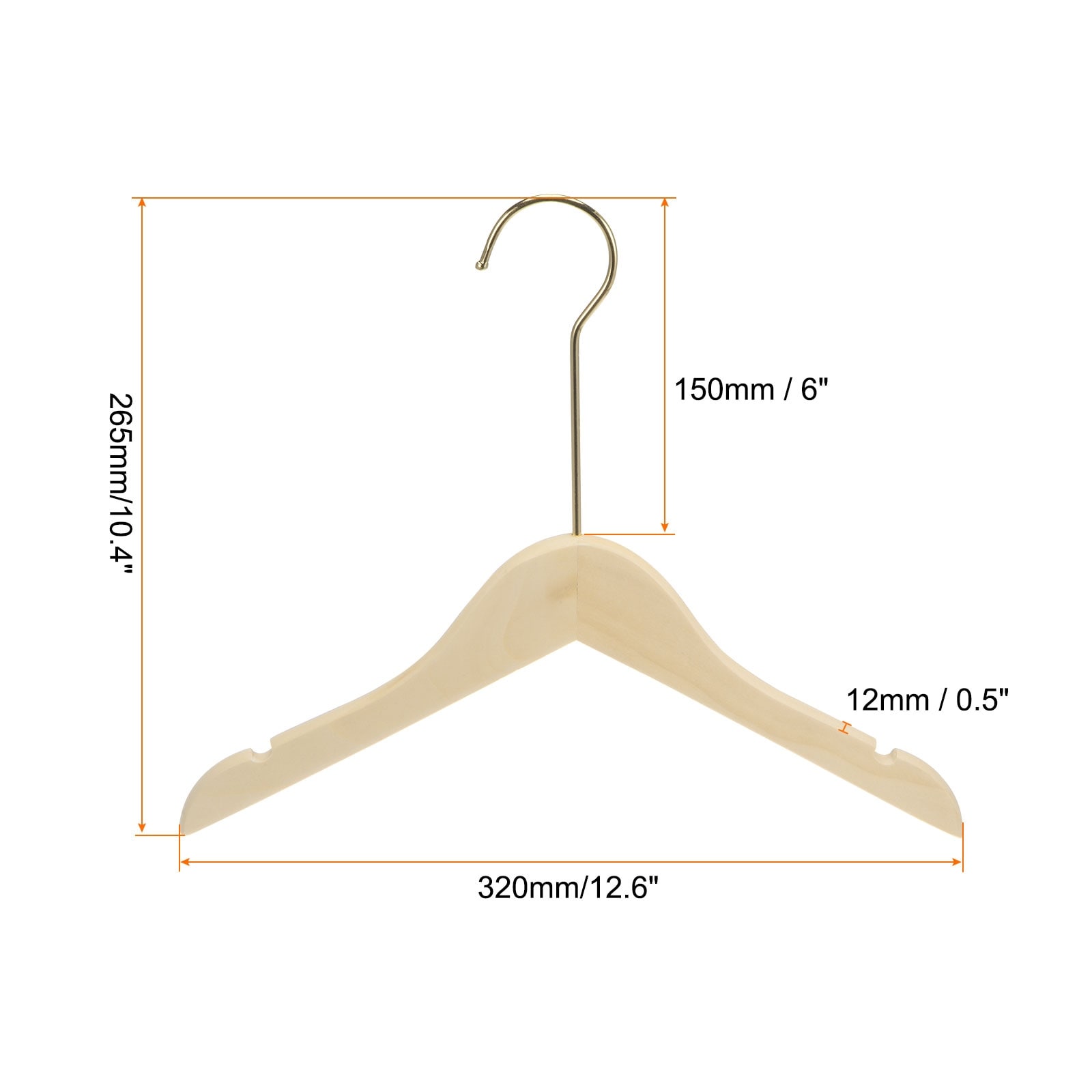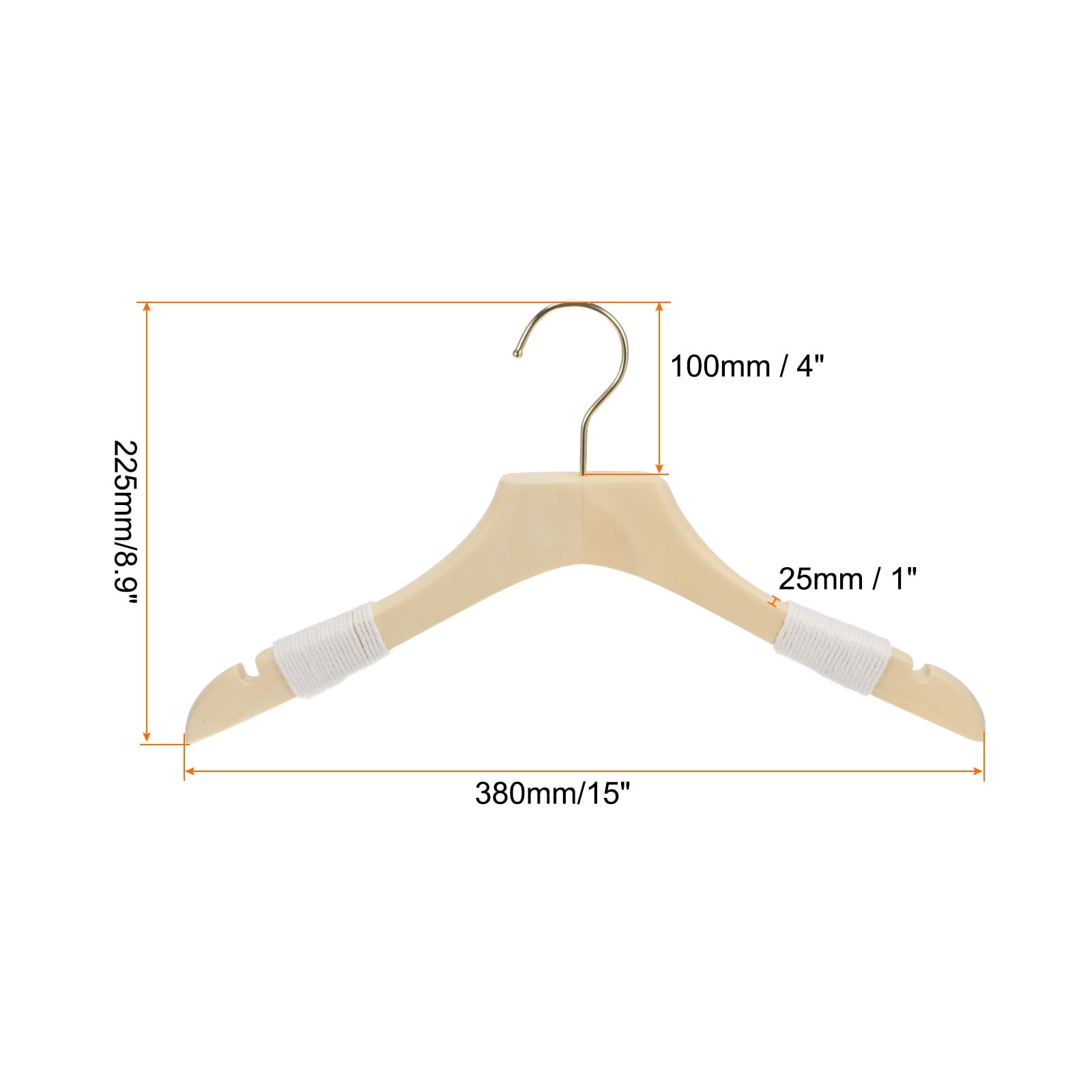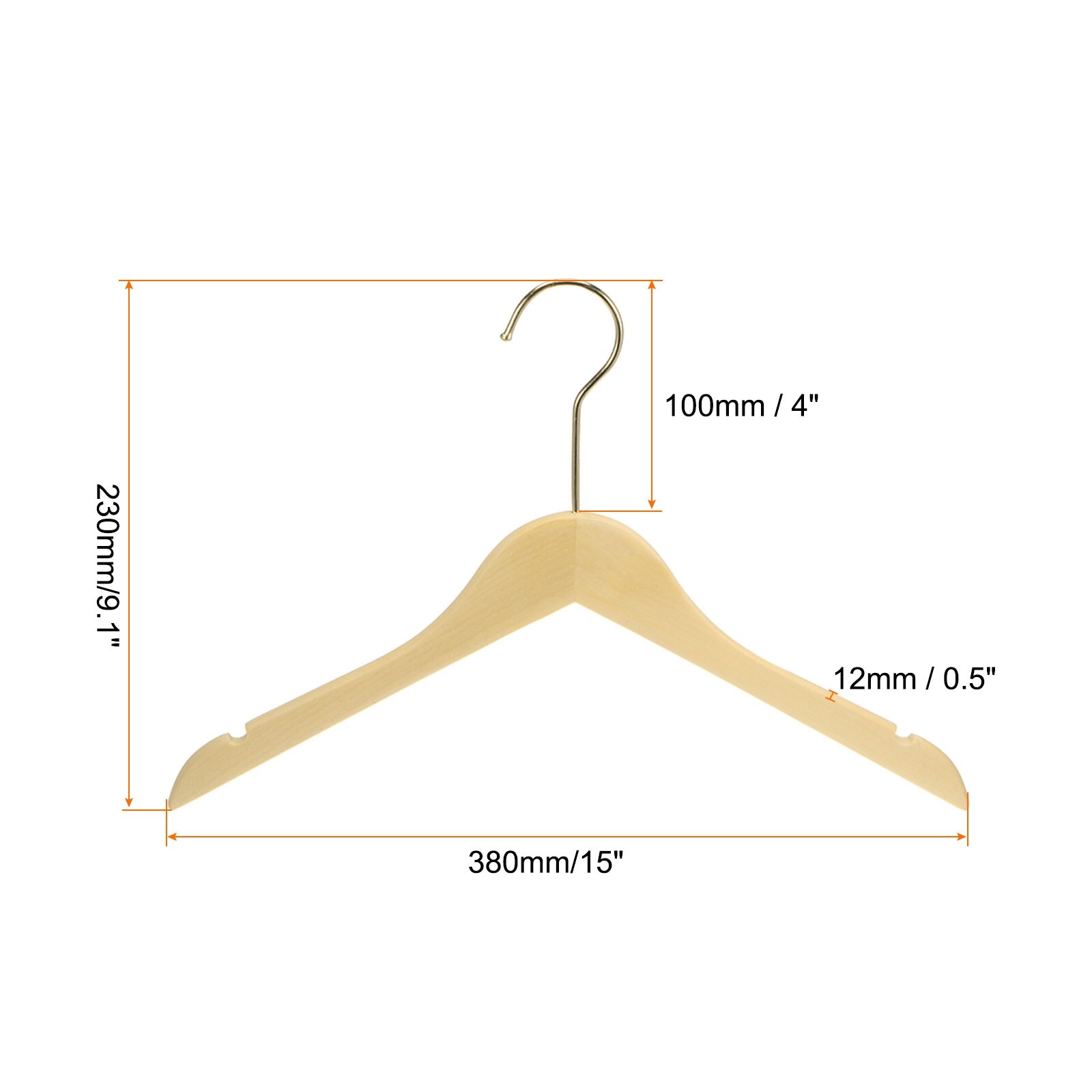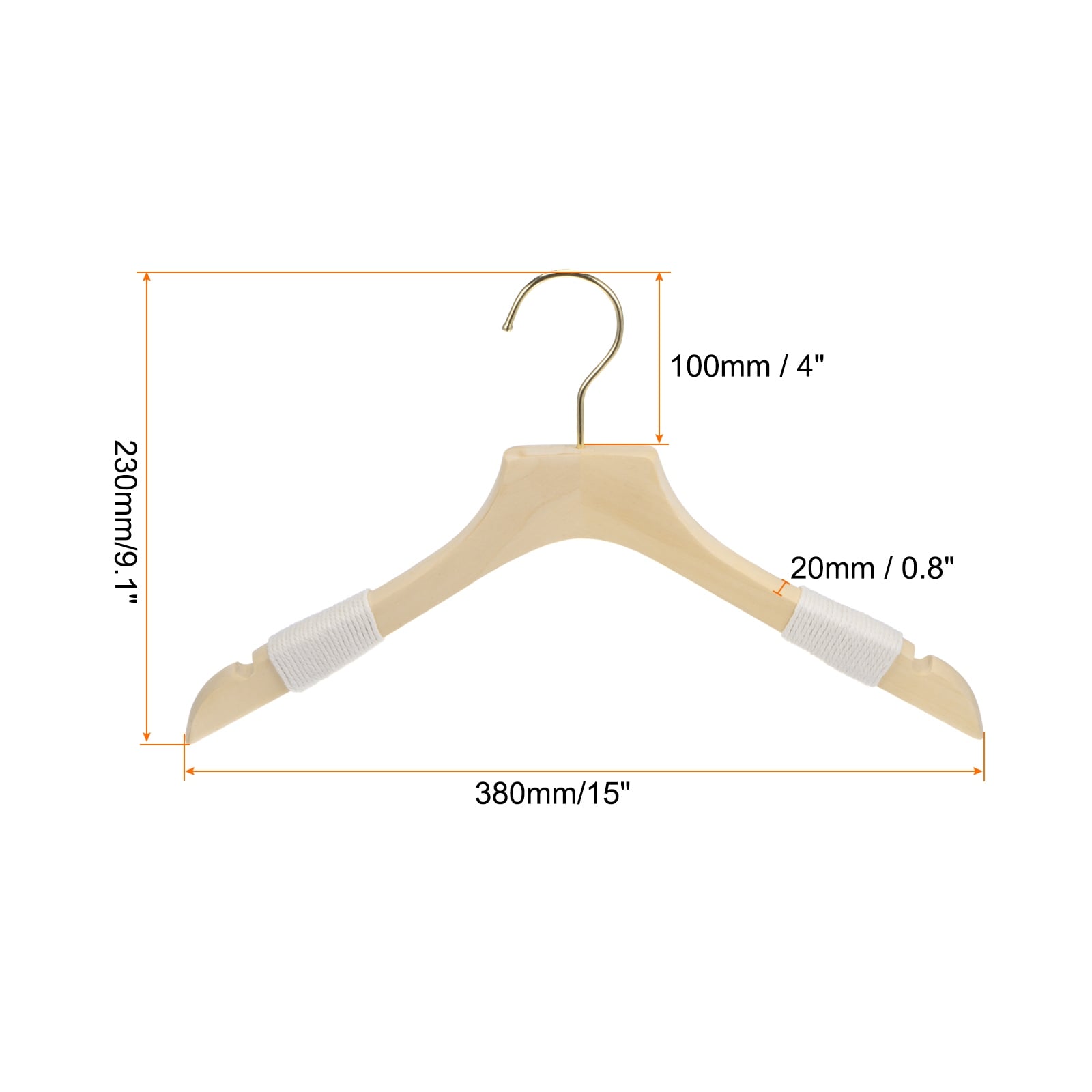 Petite Unfinished Wooden Jacket Hanger with Rubber Non-Slip Shoulder Grips, Curved 15.5 Inch Hangers with Notches