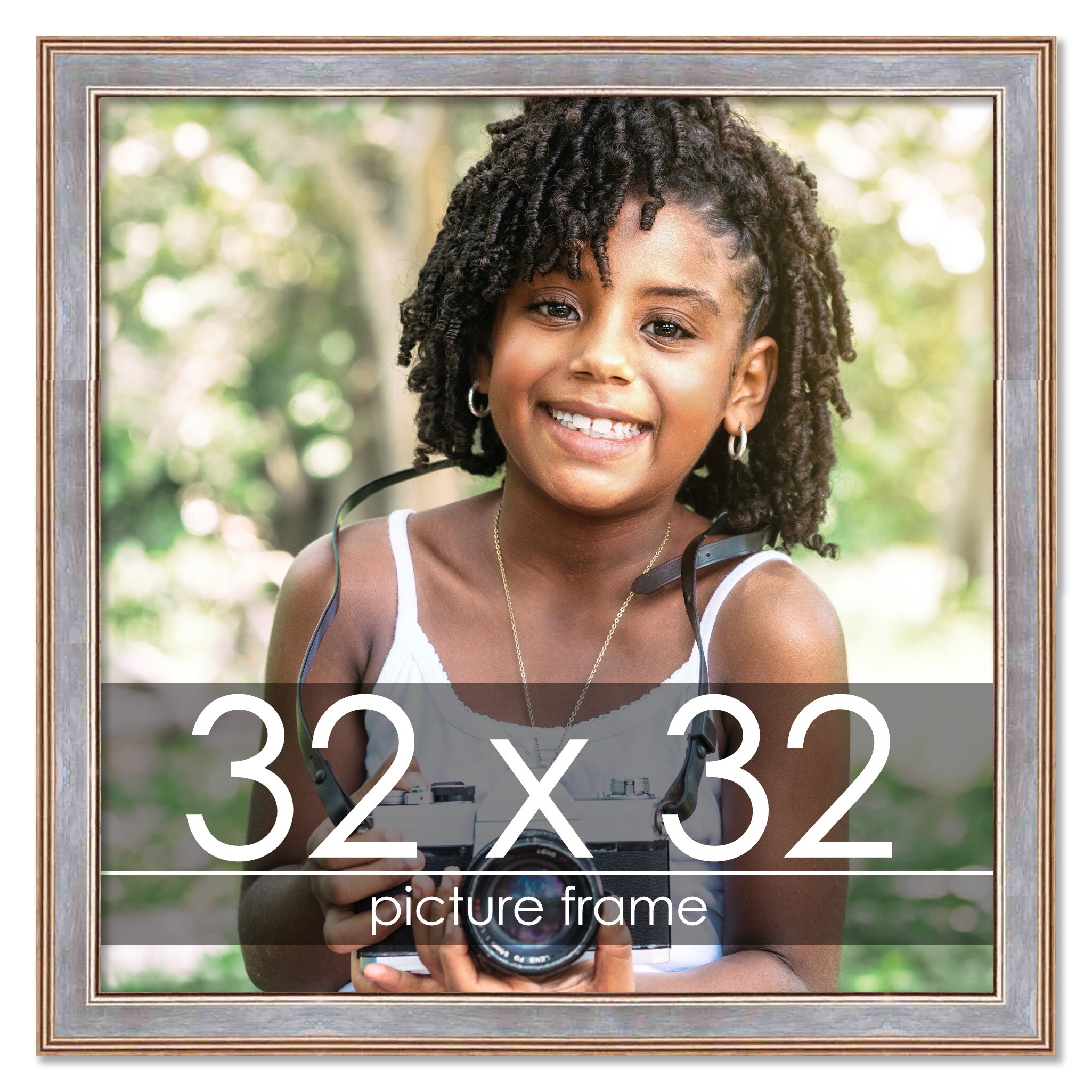 32x32 Contemporary Antique Silver Wood Picture Square Frame - Picture Frame Includes UV Acrylic, Backing, & Hanging Hardware!