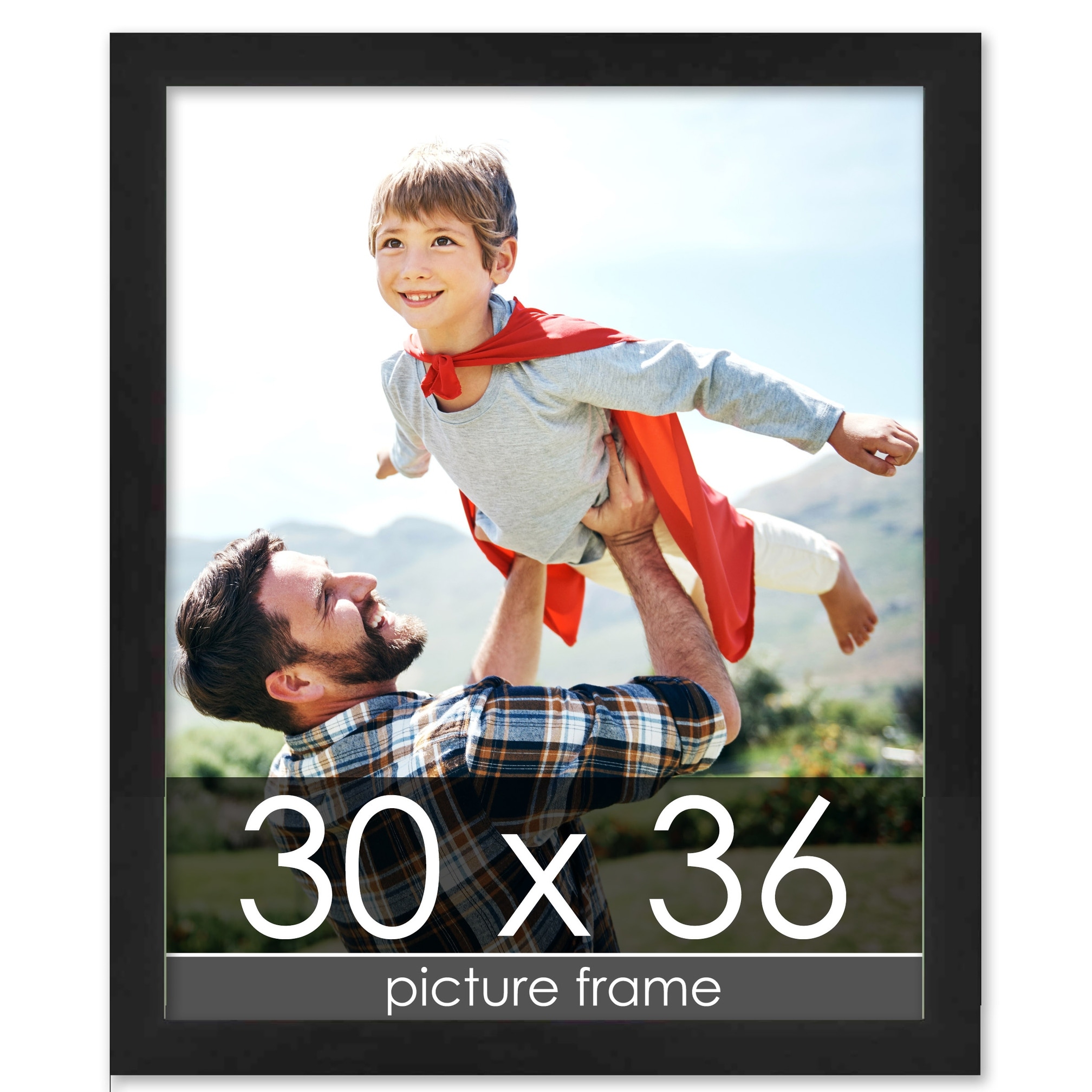 30x36 Lacquer Black Wood Picture Frame - UV Acrylic, Foam Board Backing, & Hanging Hardware Included!