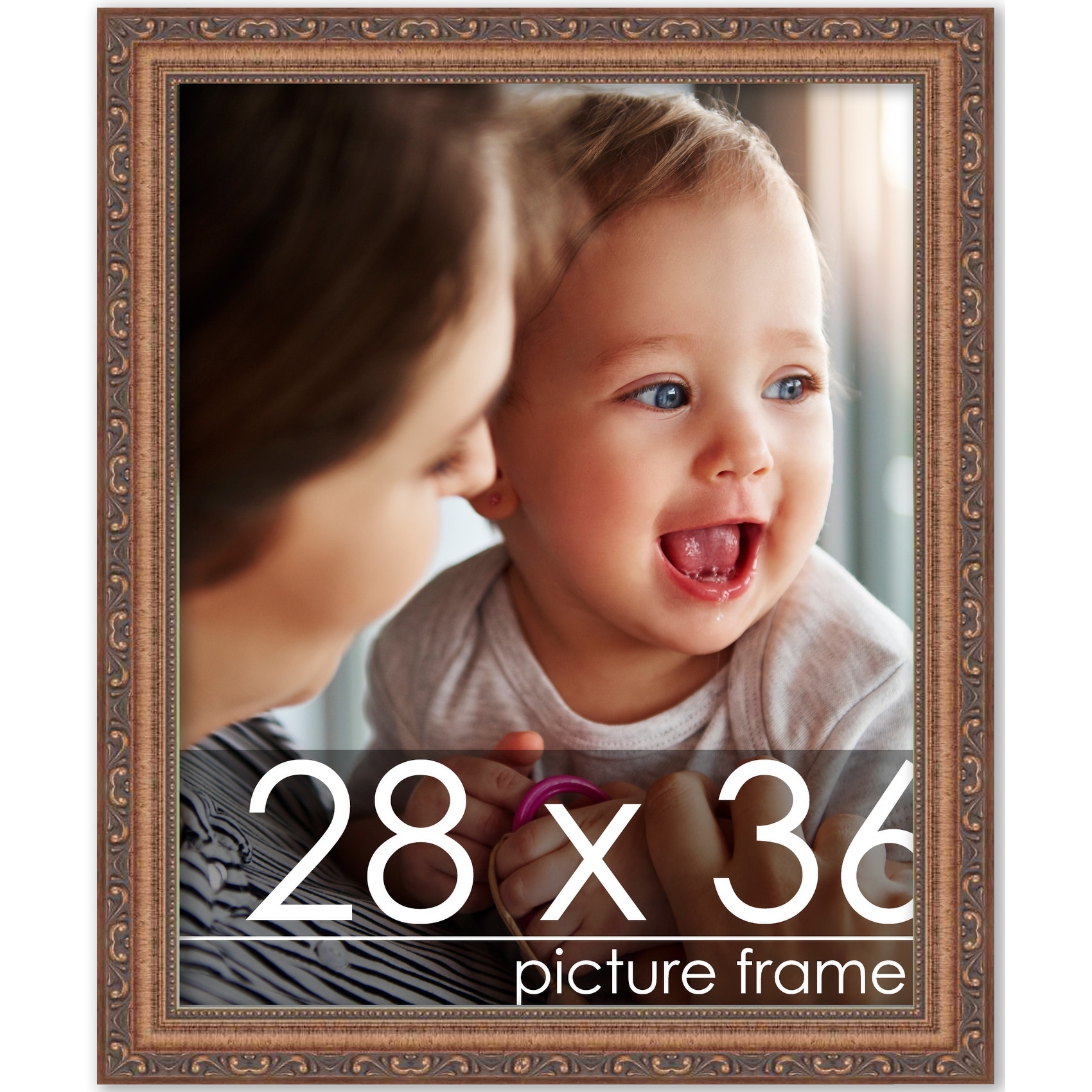 28x36 Traditional Antique Gold Wood Picture Frame - UV Acrylic, Foam Board Backing, & Hanging Hardware Included!