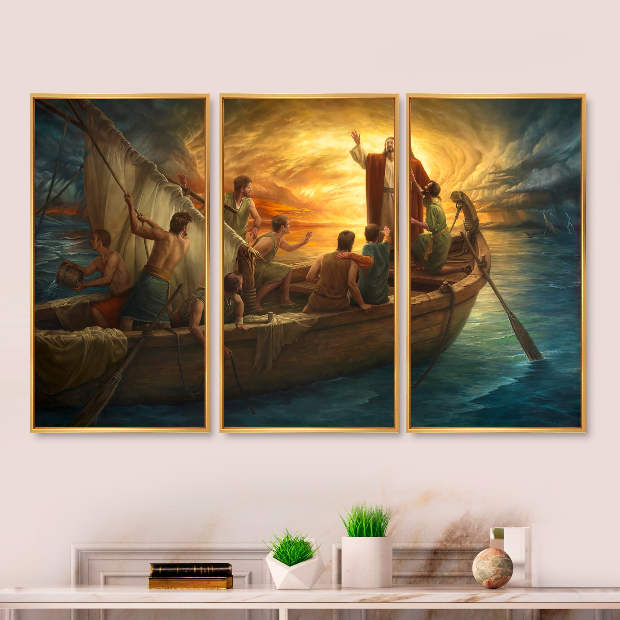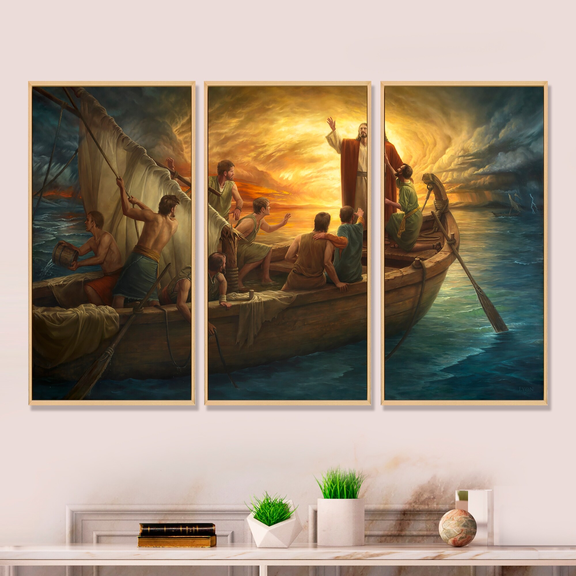 Designart "From Fear to Faith" Spiritual Framed Canvas Wall Art Set of 3 - 4 Colors of Frames