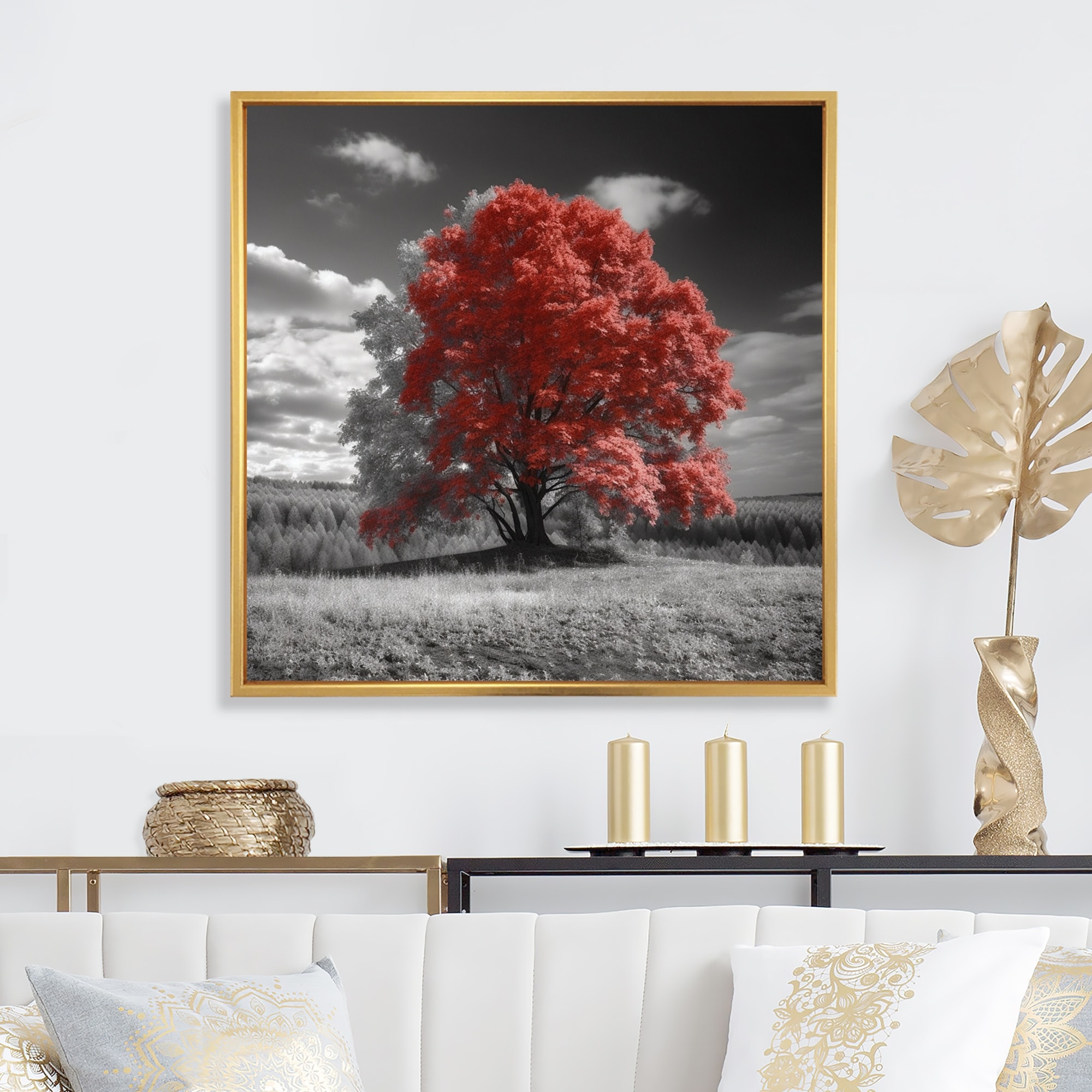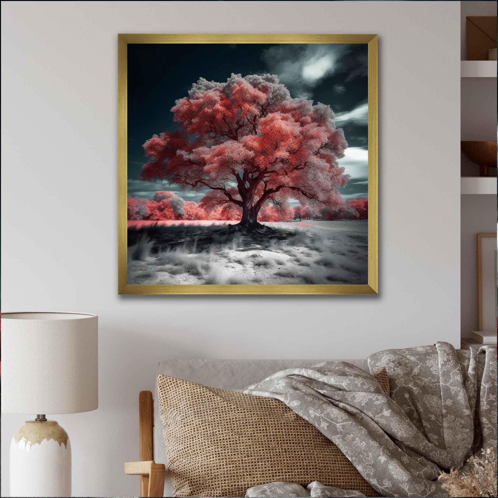 Designart "Red Tree Winter Haven" Tree Floral Framed Canvas Art Print