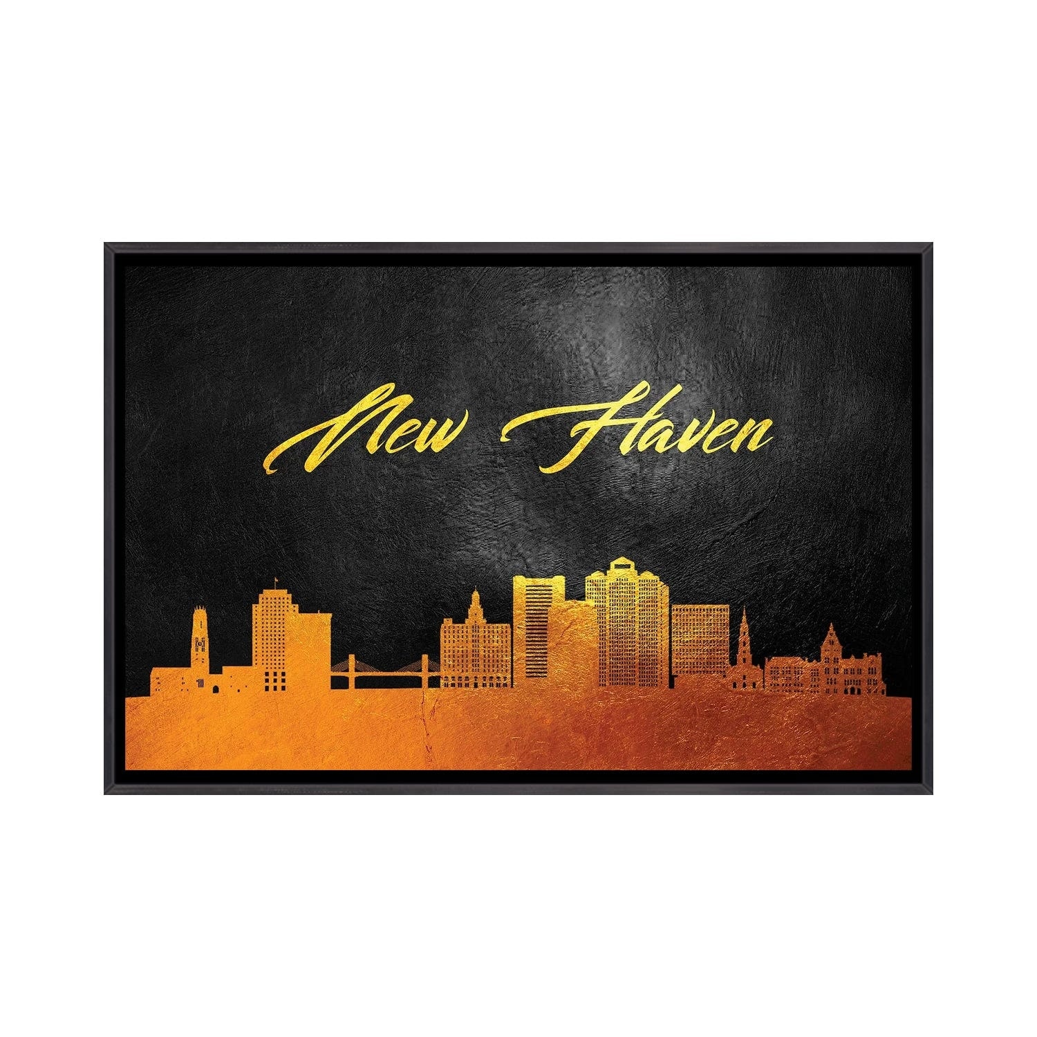 iCanvas "New Haven Connecticut Gold Skyline" by Adrian Baldovino Framed