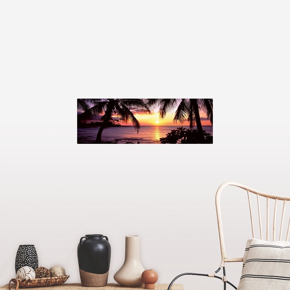 "Silhouette of palm trees on the beach, Big Island, Hawaii II" Poster Print - Multi