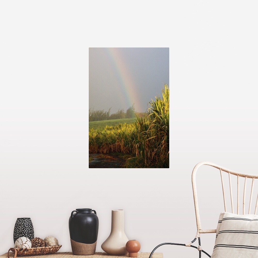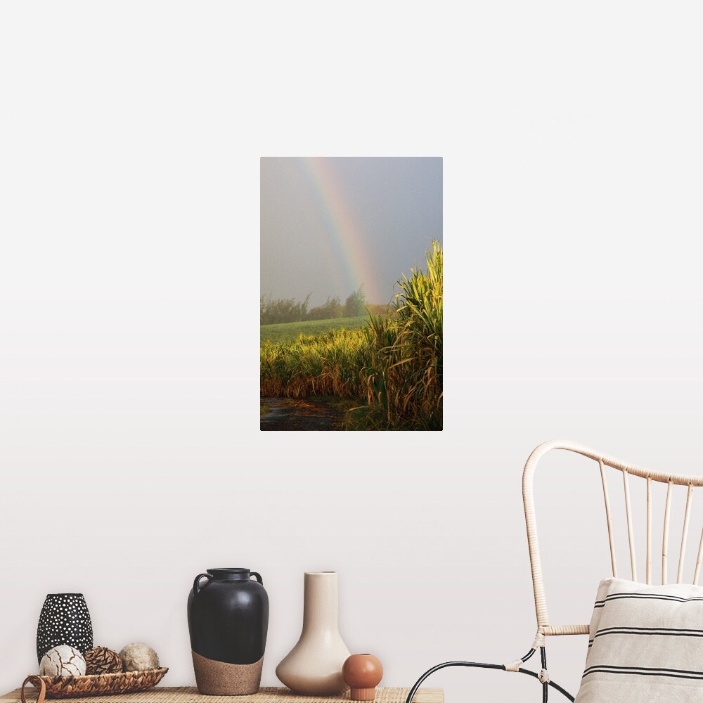 "Rainbow arching into field behind stream, Hawaii" Poster Print - Multi