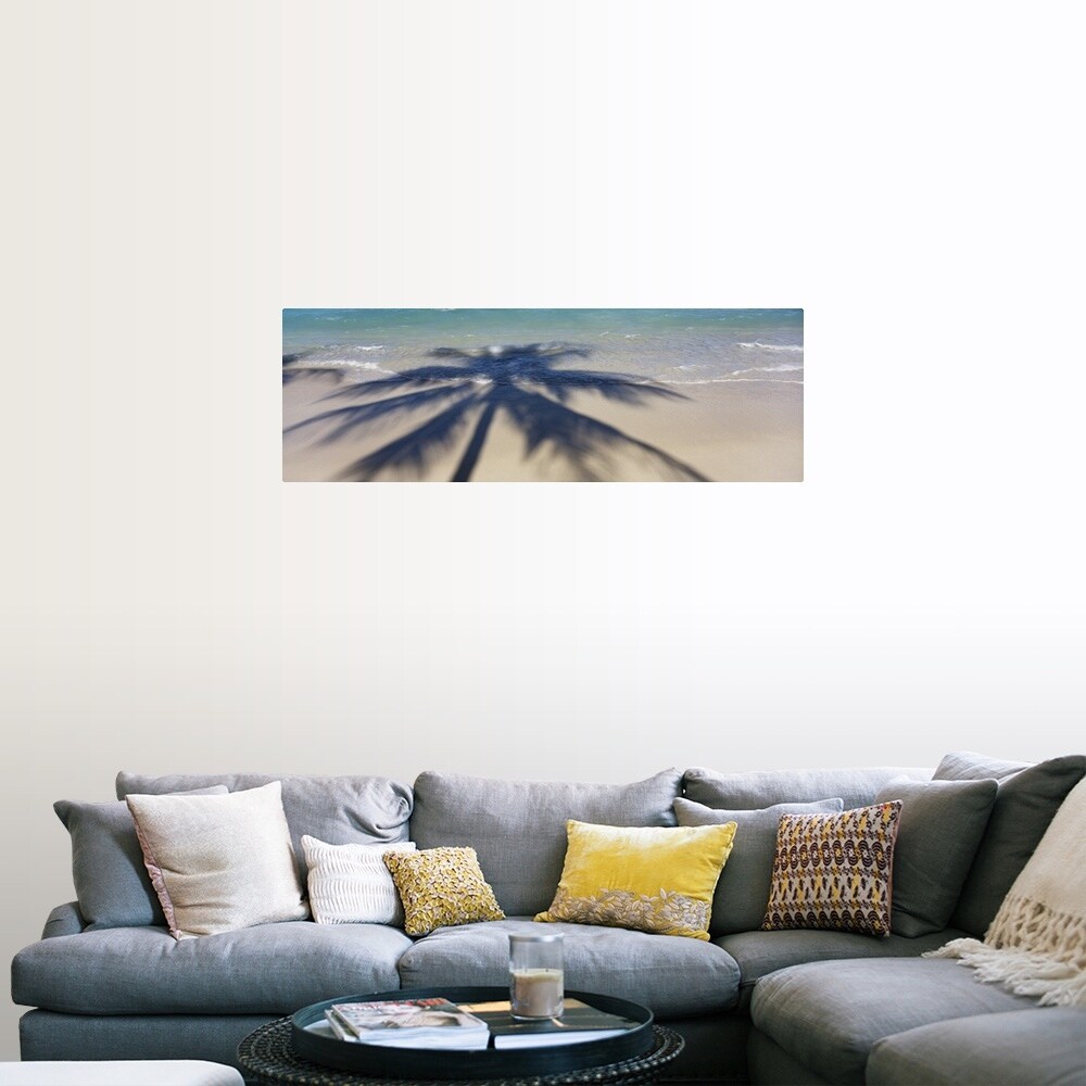 "High angle view of shadow of a tree on the beach, Hawaii" Poster Print